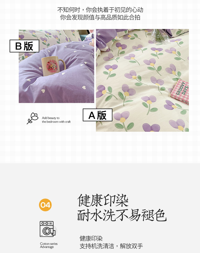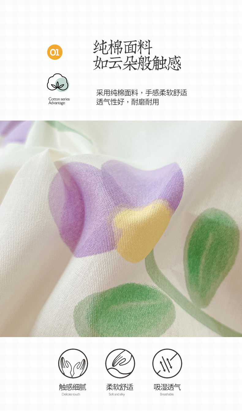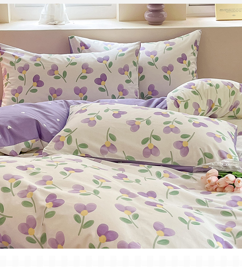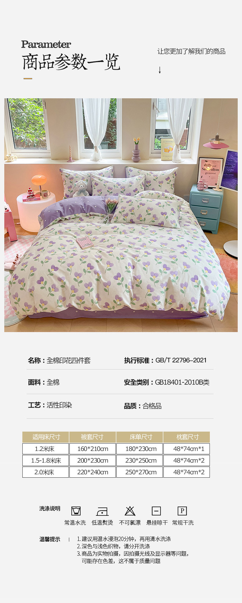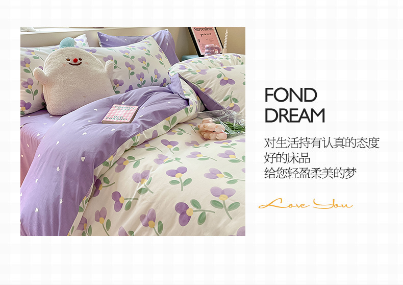 商品名称:沐棉 2023新款全棉13372小清新印花四件套 紫爱