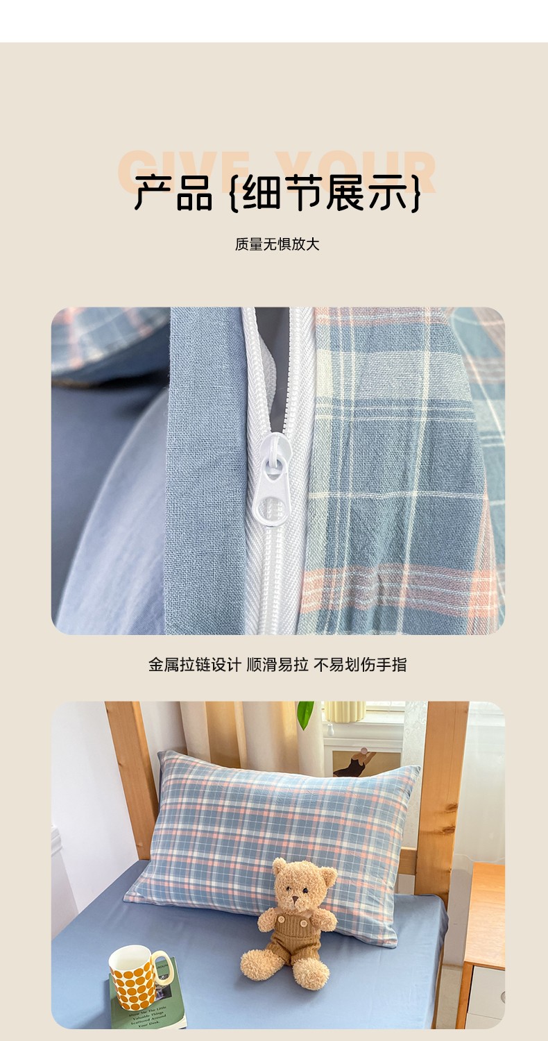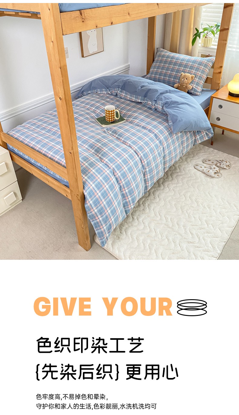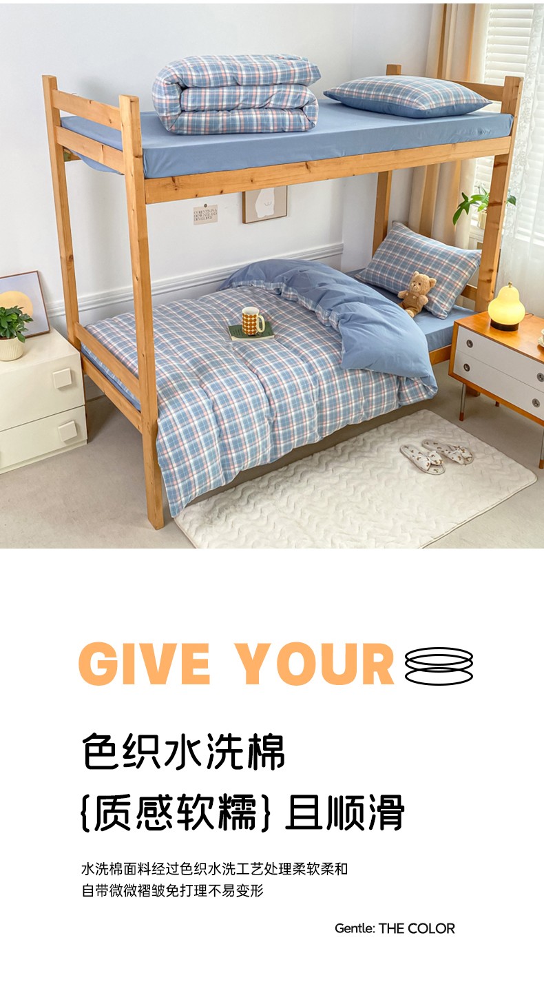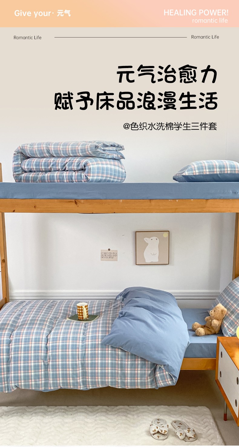 商品名称:吉象 2025新款色织学生水洗棉上下铺三件套 初晴蓝