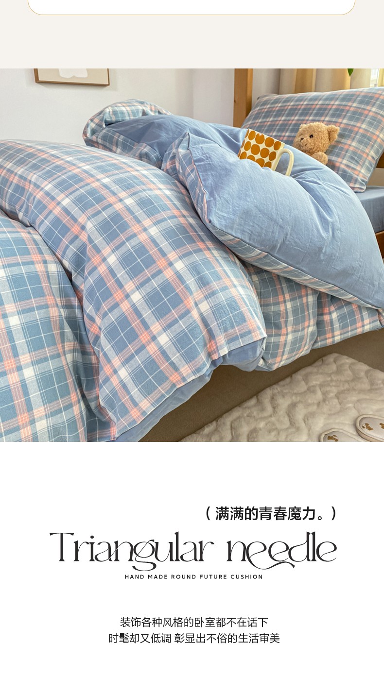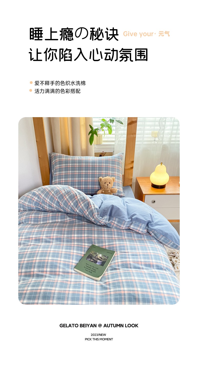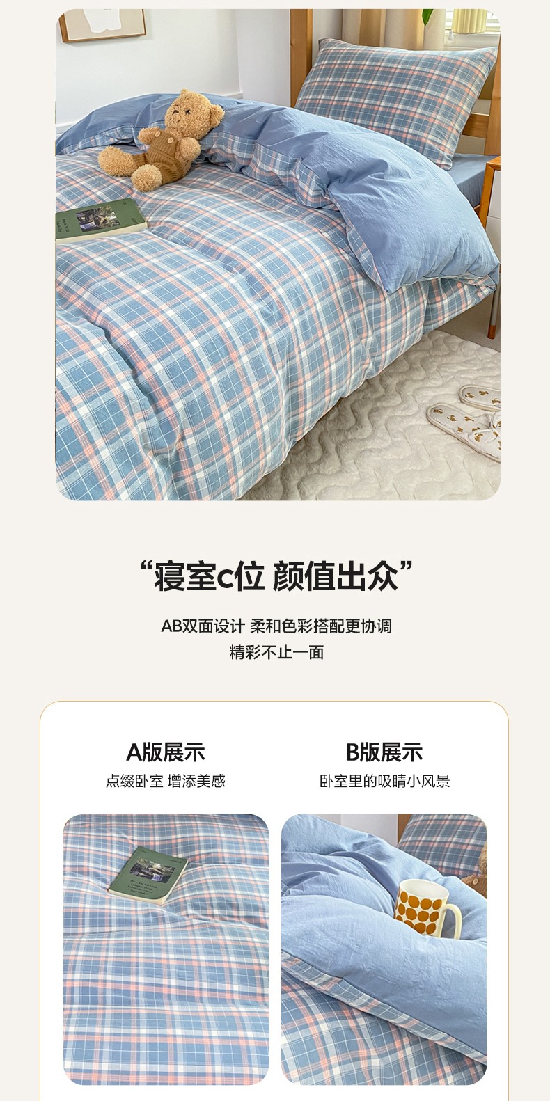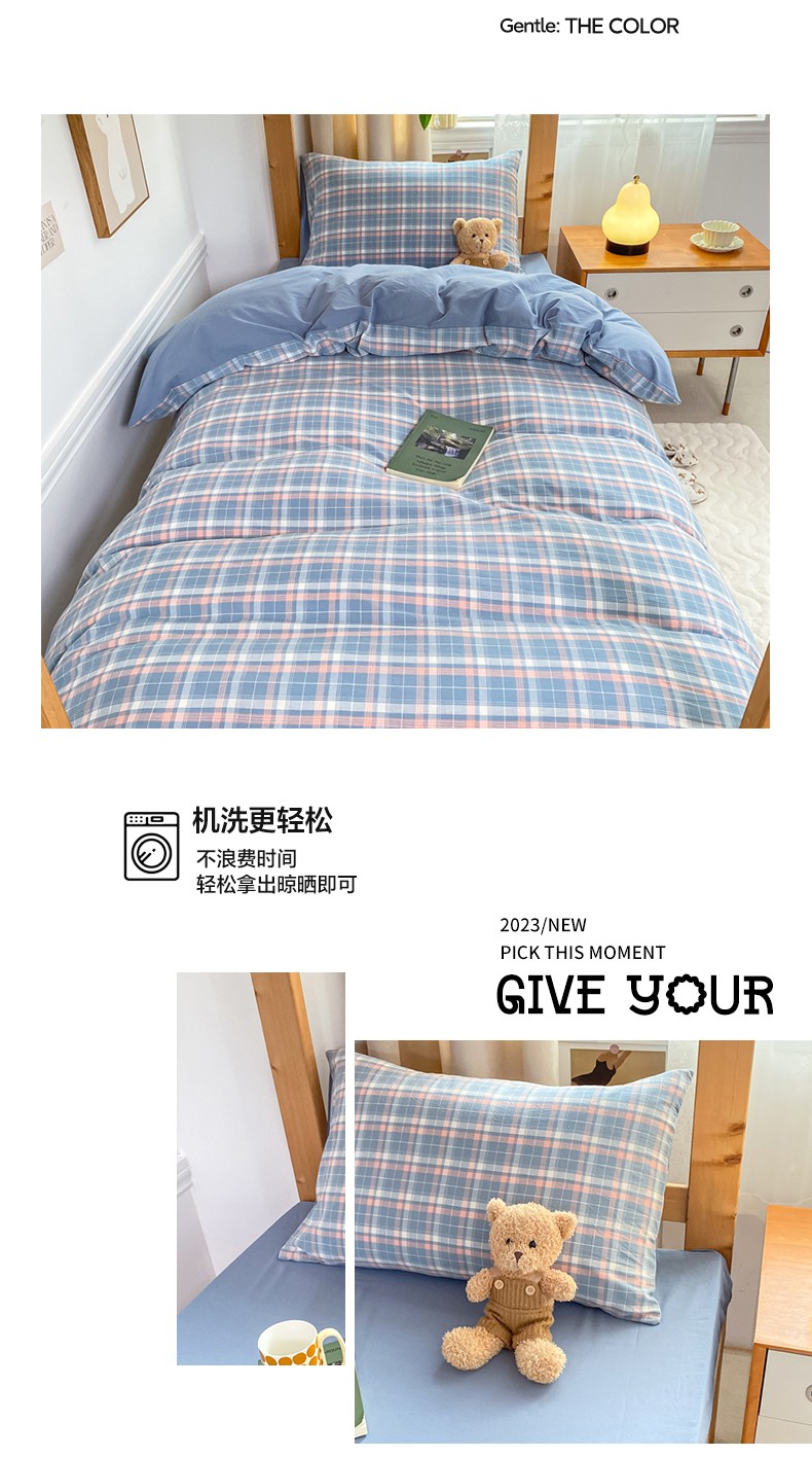 商品名称:吉象 2025新款色织学生水洗棉上下铺三件套 初晴蓝