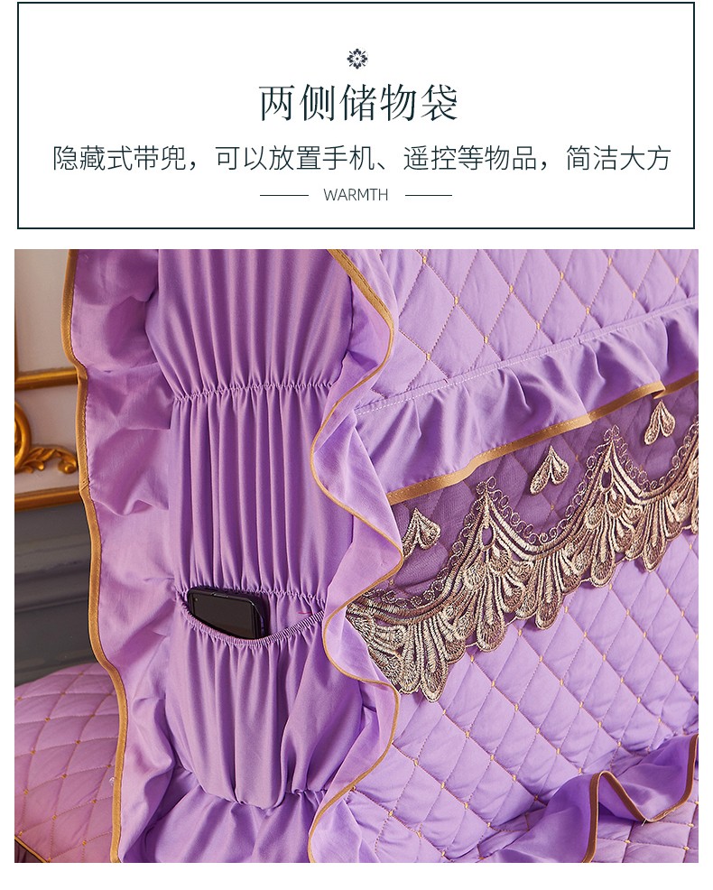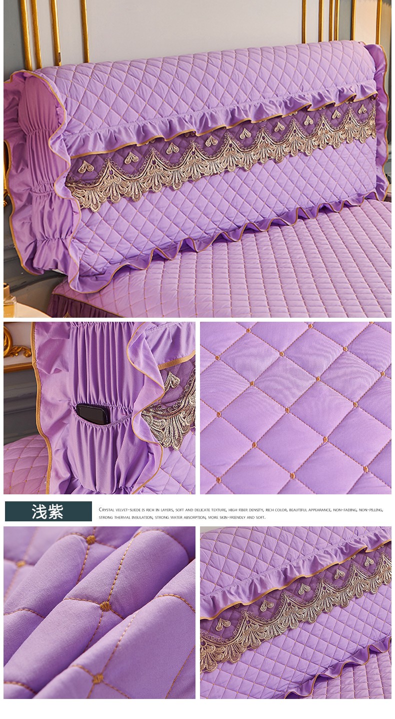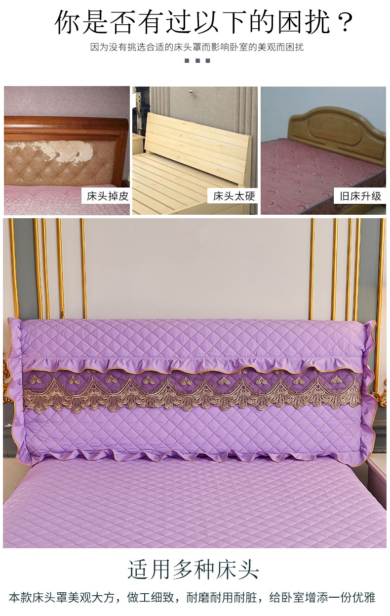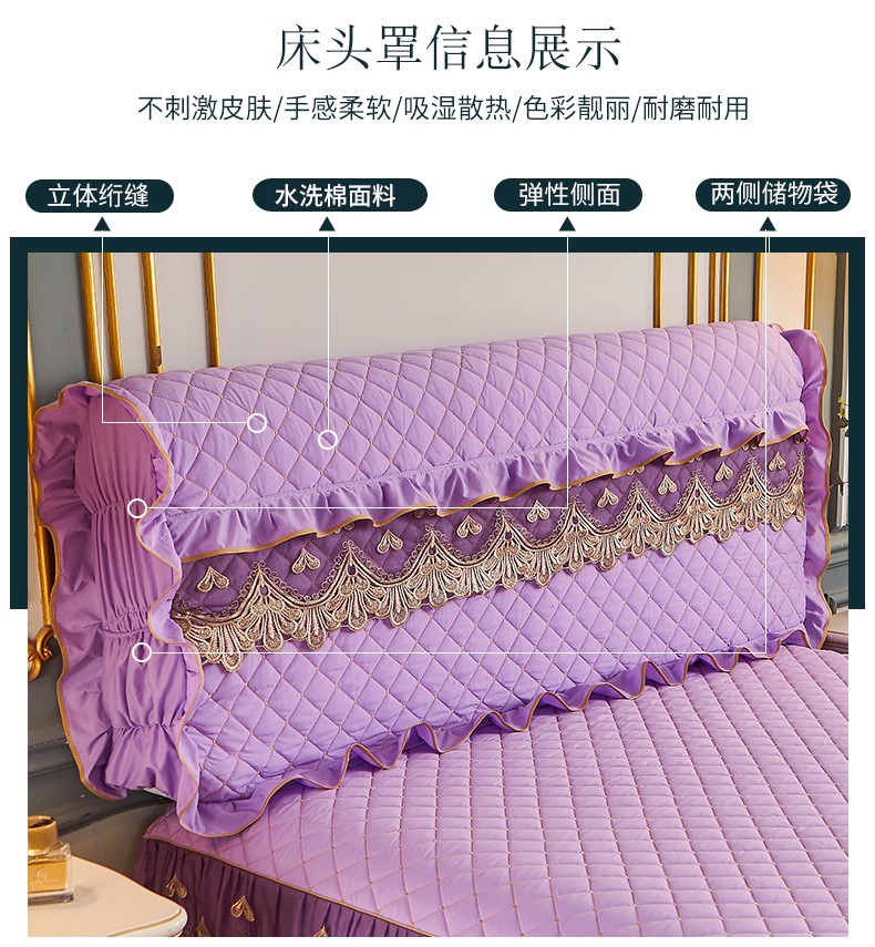 商品名称:屹成 2024新款水洗棉蕾丝四季款床笠床裙单品套件-床头罩 浅紫