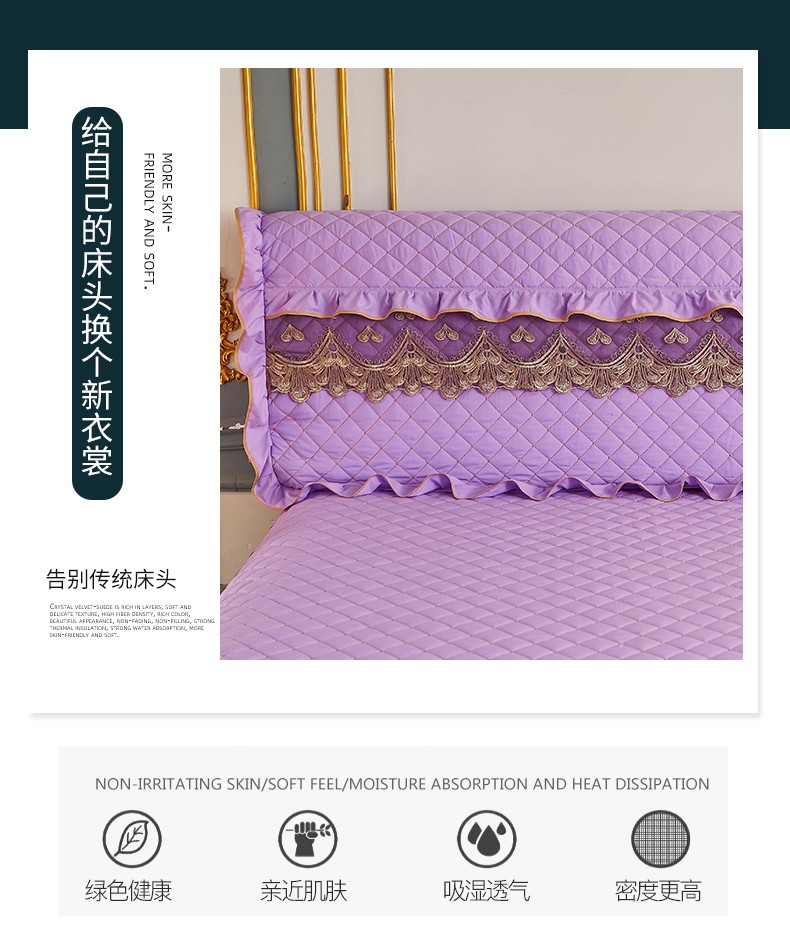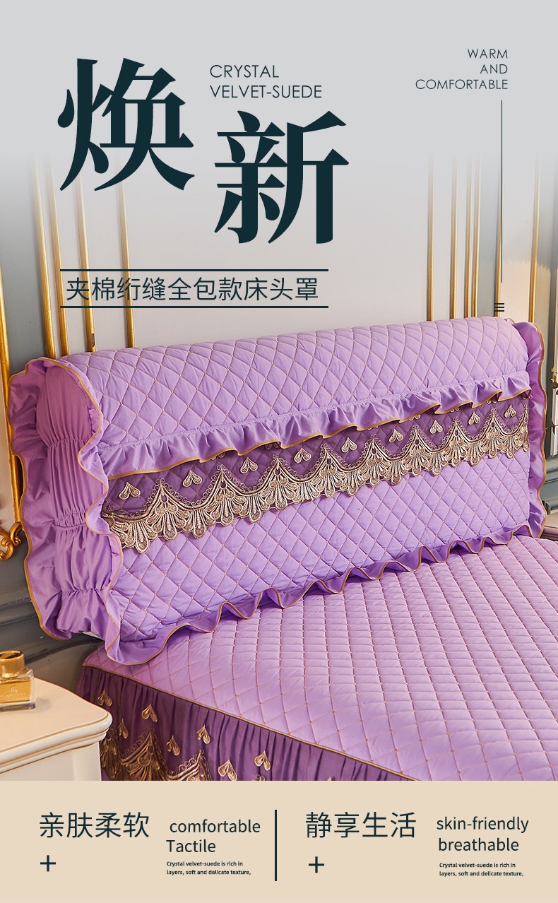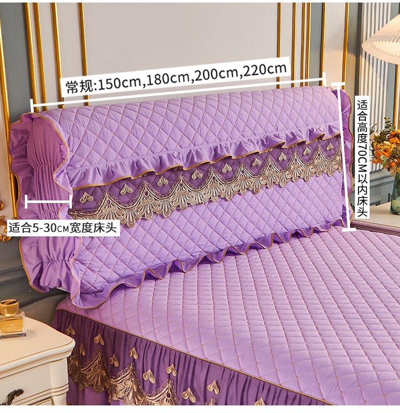 屹成 2024新款水洗棉蕾丝四季款床笠床裙单品套件-床头罩 浅紫