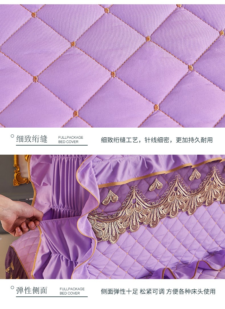 (总)屹成家纺2025新款水晶绒夹棉绗缝蕾丝床裙三件套(塞纳河畔)床裙单件起售价不低于105元,大红,豆沙,翡翠绿,粉玉,橄榄绿,蔚蓝,银灰