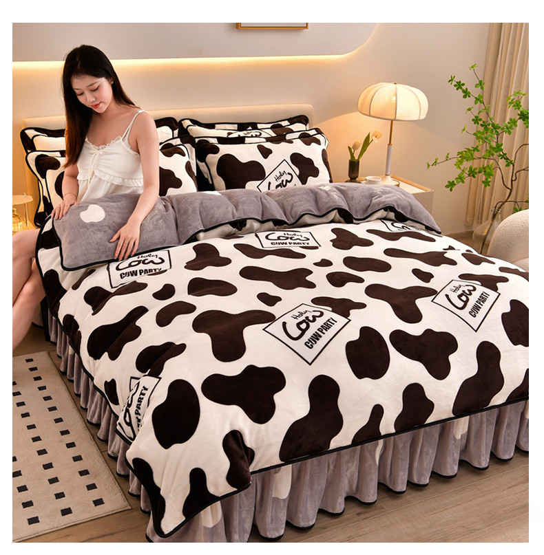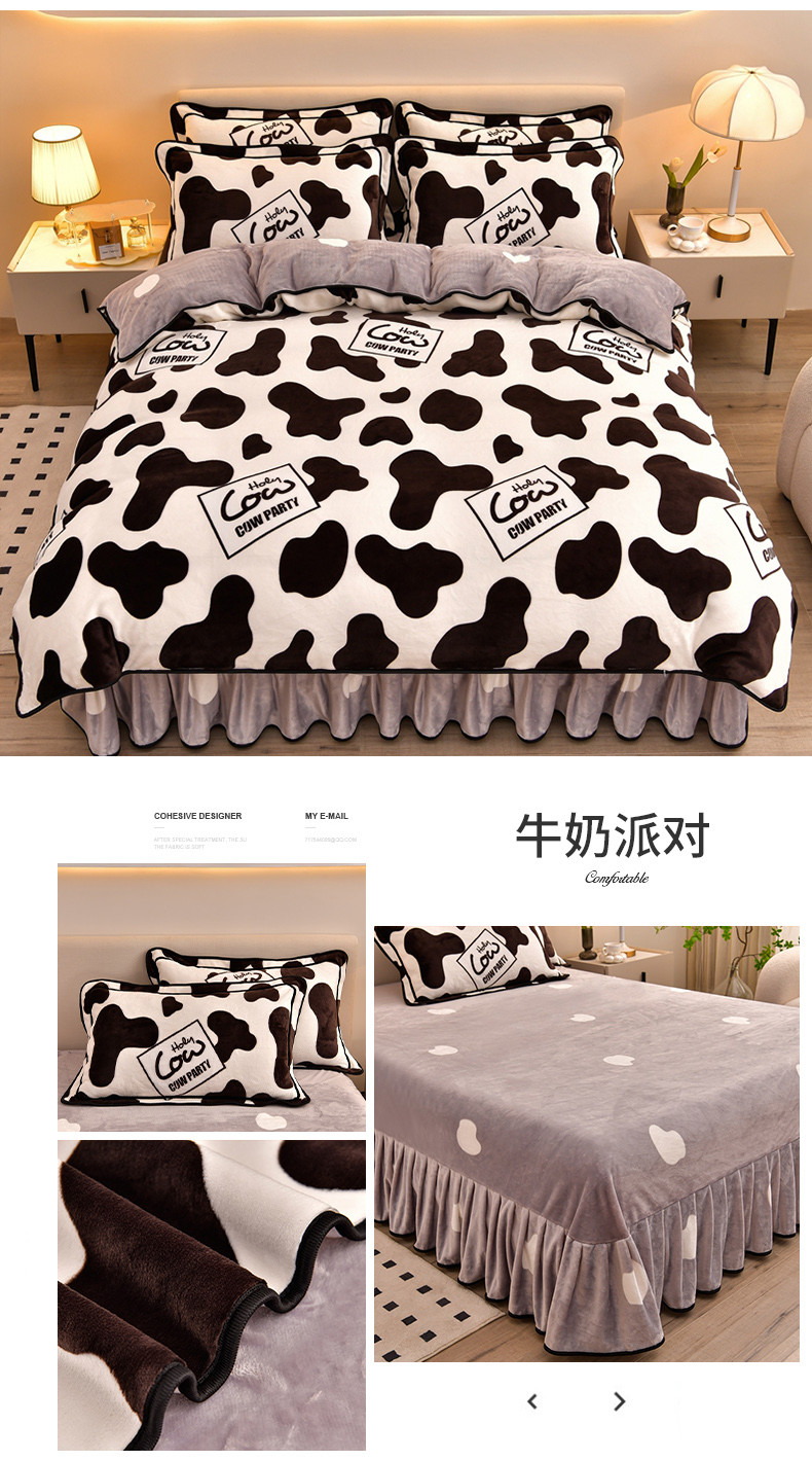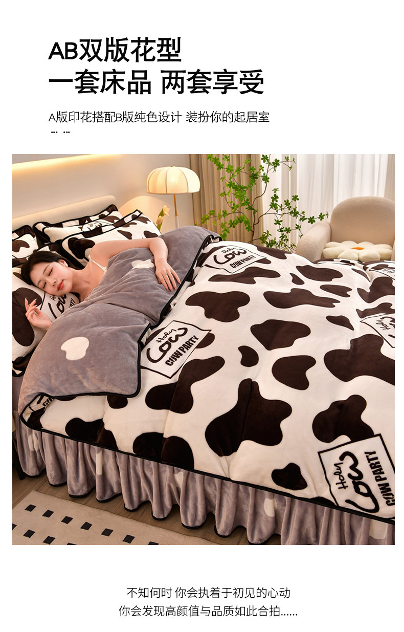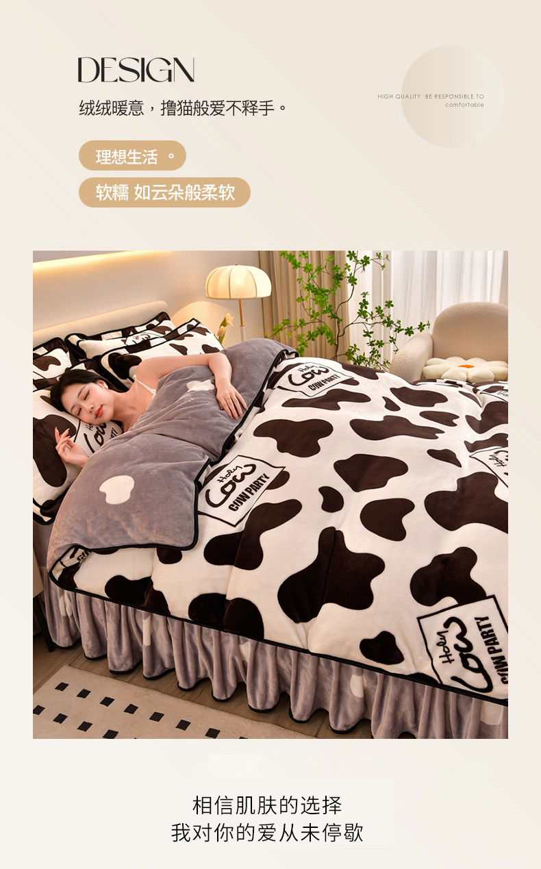 绒耀 2025新款高克重牛奶绒四件套保暖四件套直播爆款电商爆款奶牛派对