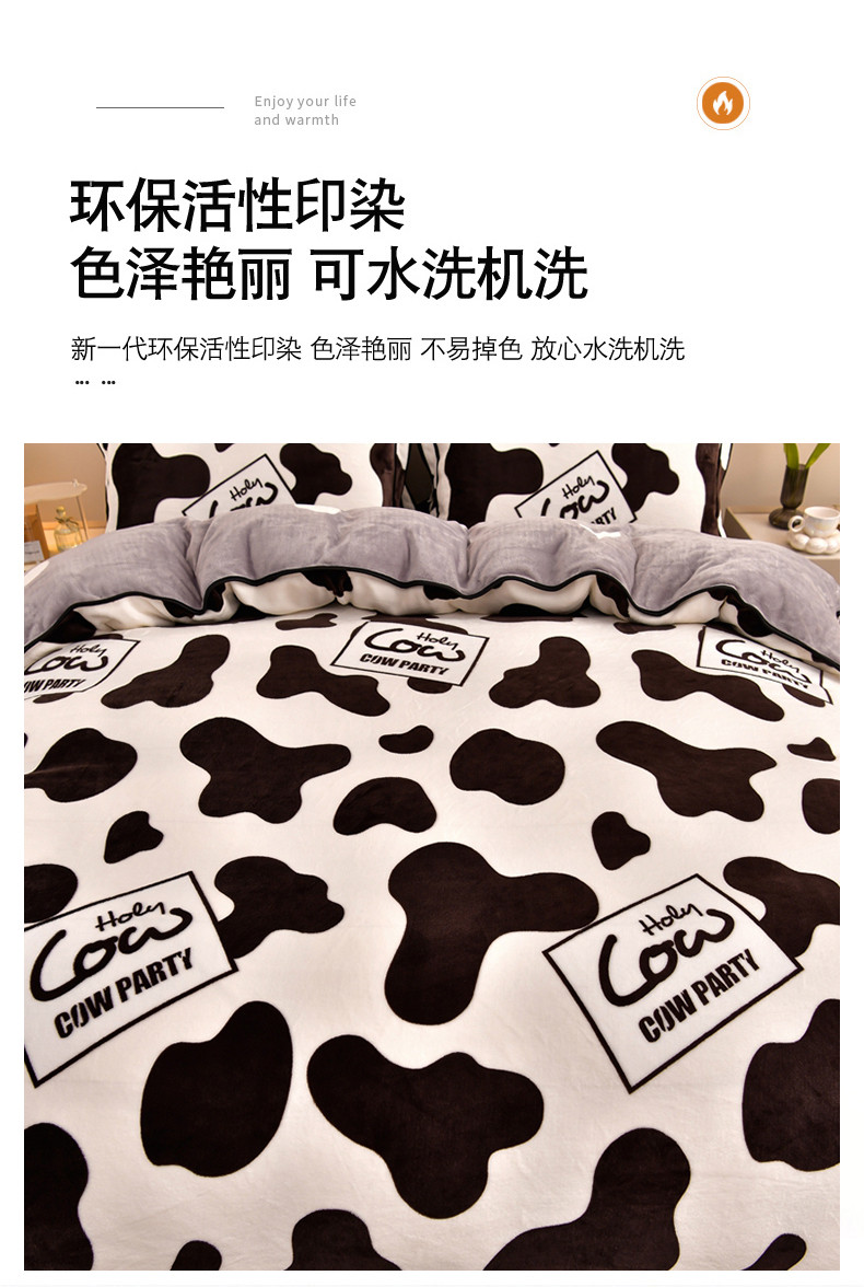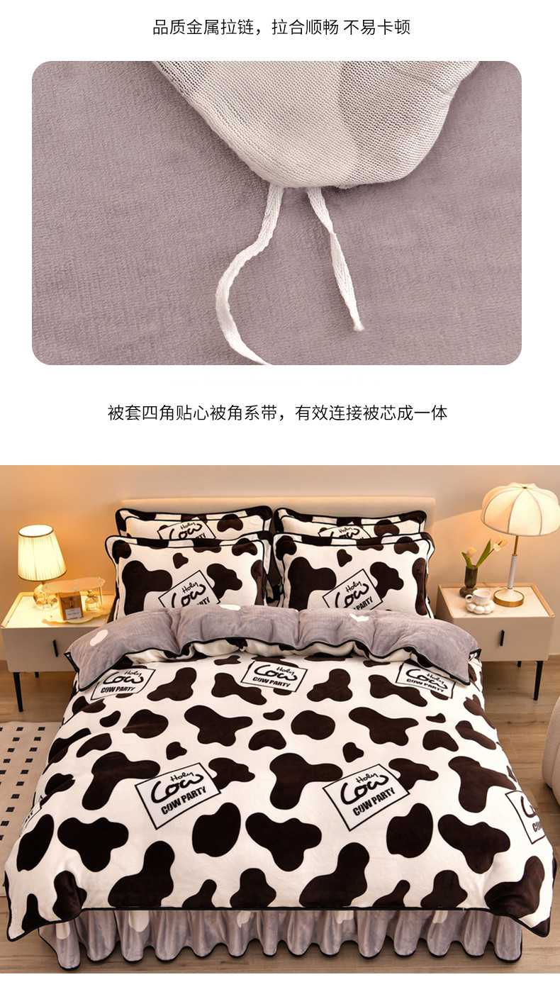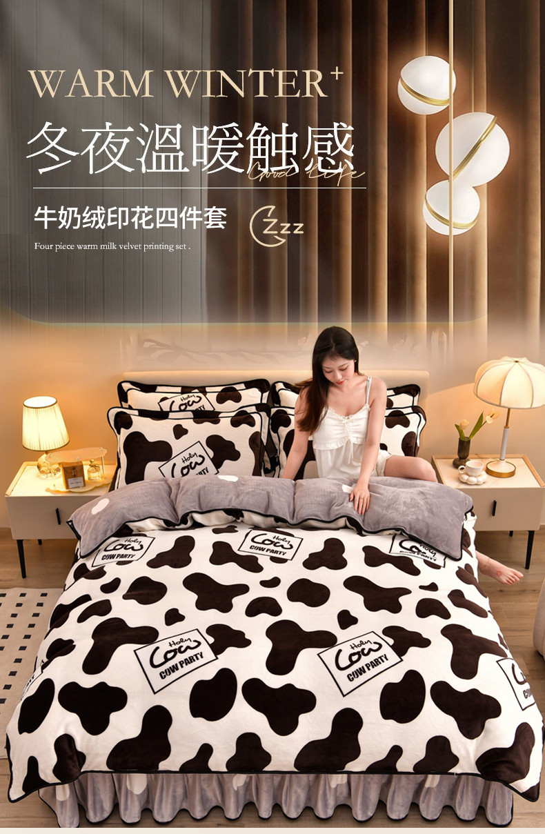商品名称:绒耀 2025新款高克重牛奶绒四件套保暖四件套直播爆款电商爆款奶牛派对