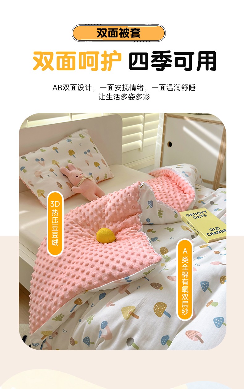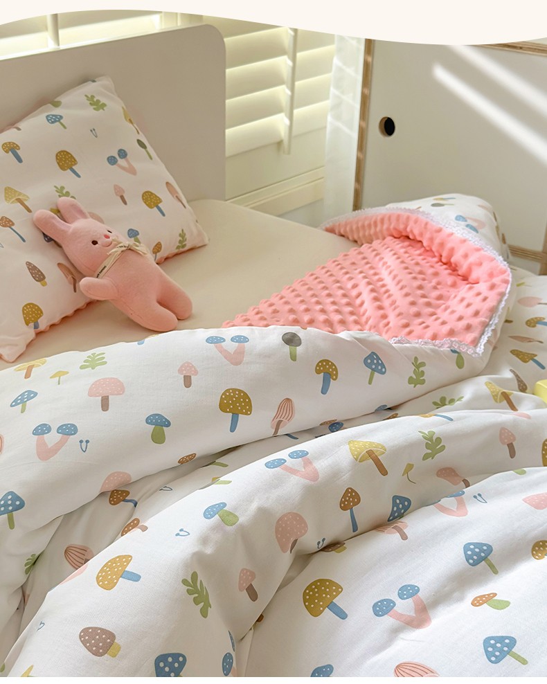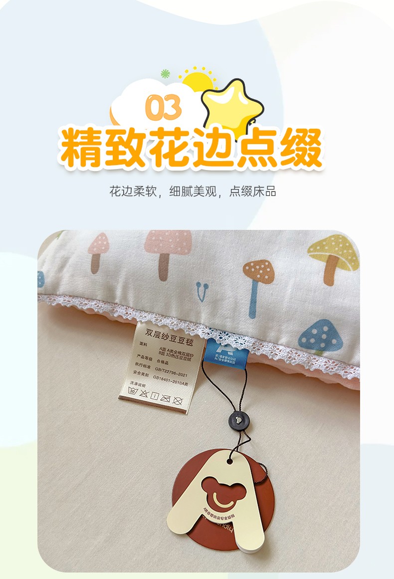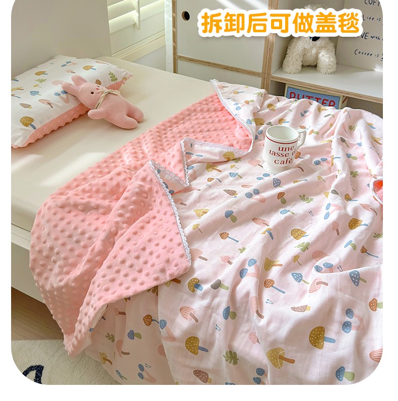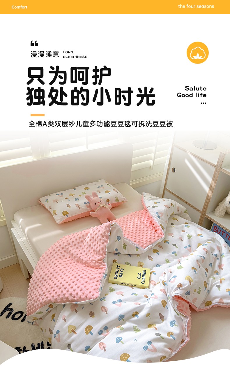 希诺 2023新款全棉A类婴幼儿双层纱儿童多功能盖毯豆豆毯可拆洗豆豆被 多彩蘑菇