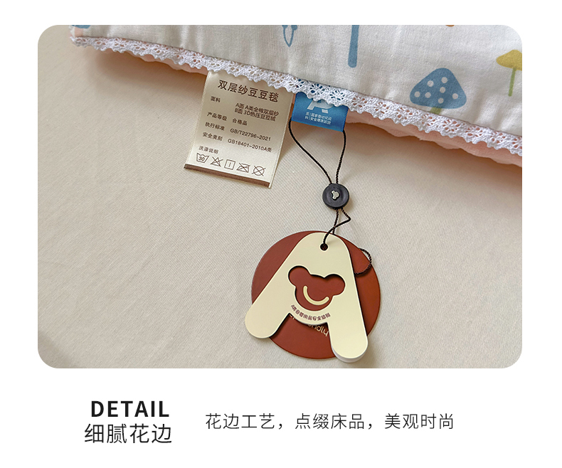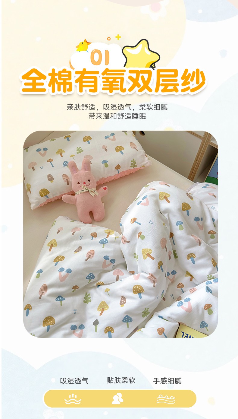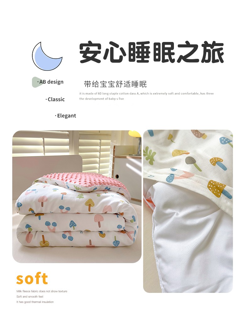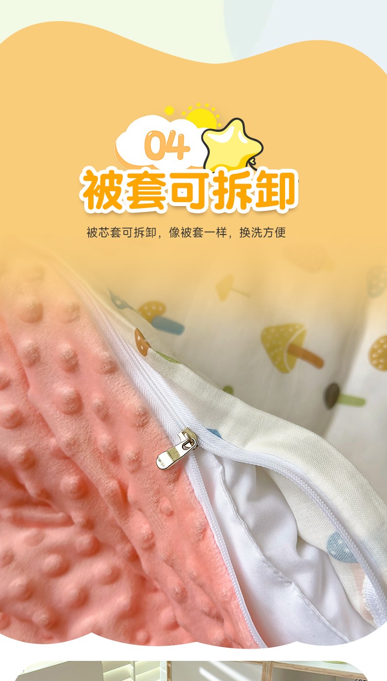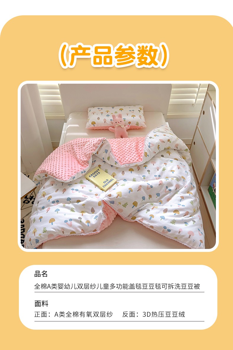 商品名称:希诺 2023新款全棉A类婴幼儿双层纱儿童多功能盖毯豆豆毯可拆洗豆豆被 多彩蘑菇