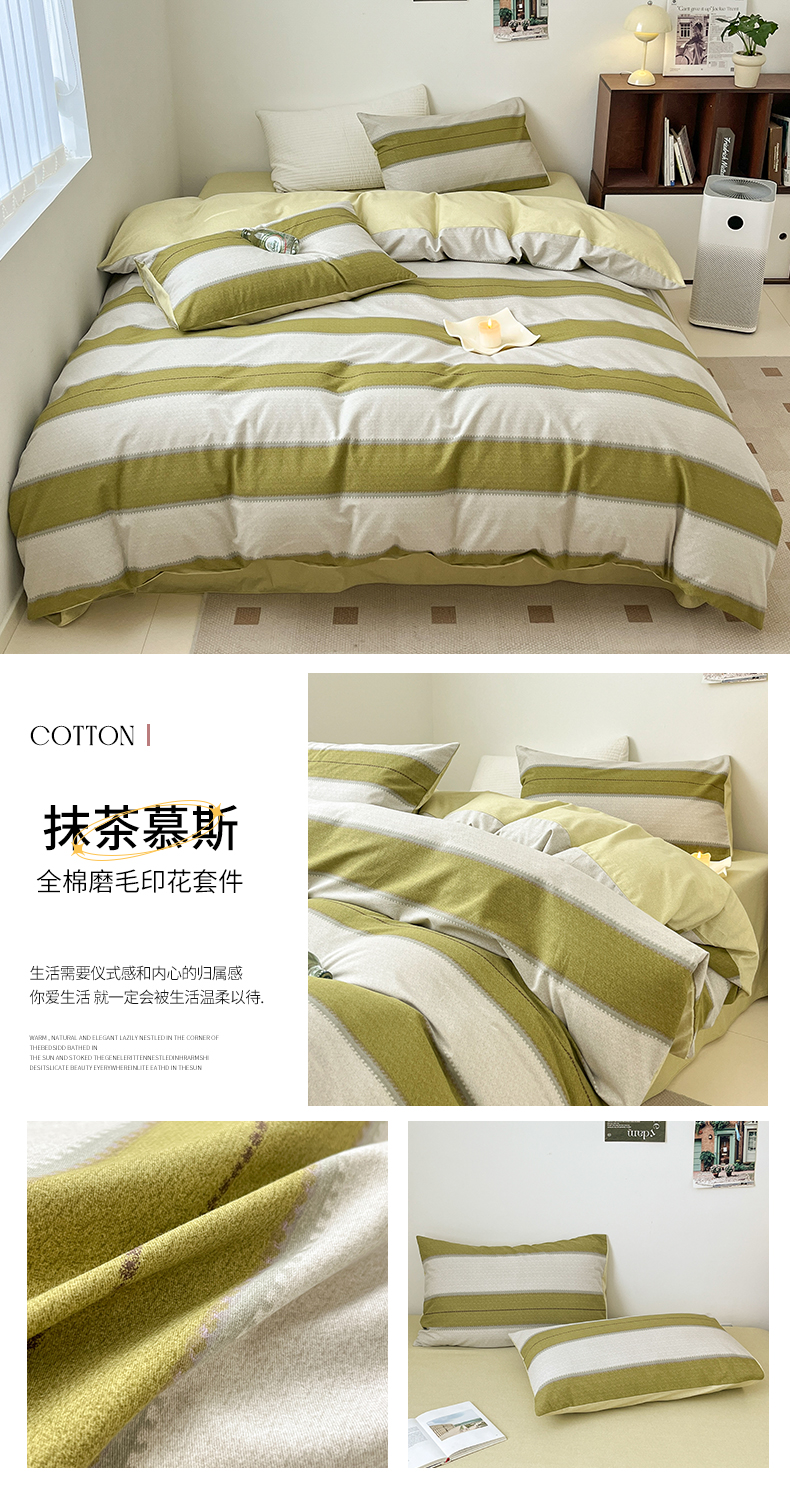 优彩 2023新款全棉印花加厚磨毛四件套轻奢简约碎花 抹茶慕斯