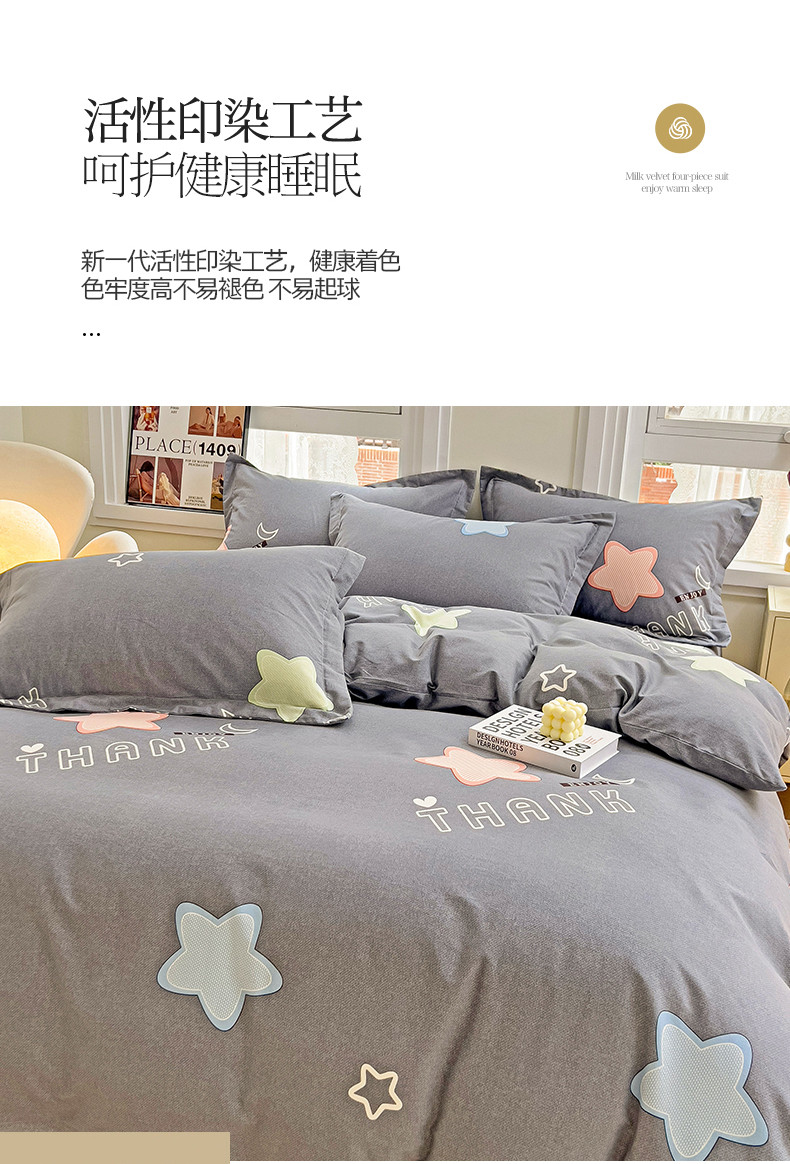 当前位置: 91家纺网 > 商品网购 > 床品套件 > 四件套 > 全棉普通四件套 > 品乐家纺 2023新款全棉喷气磨毛印花四件套 满天星-灰