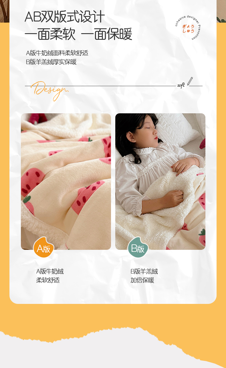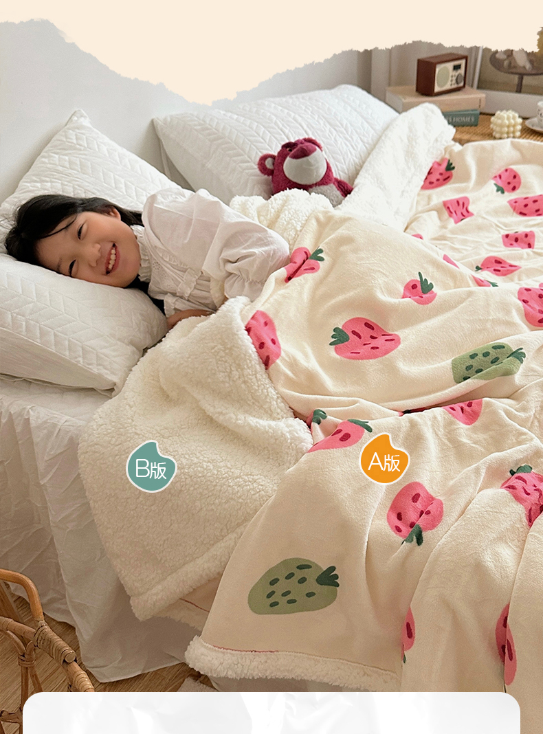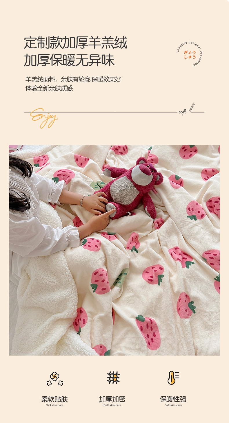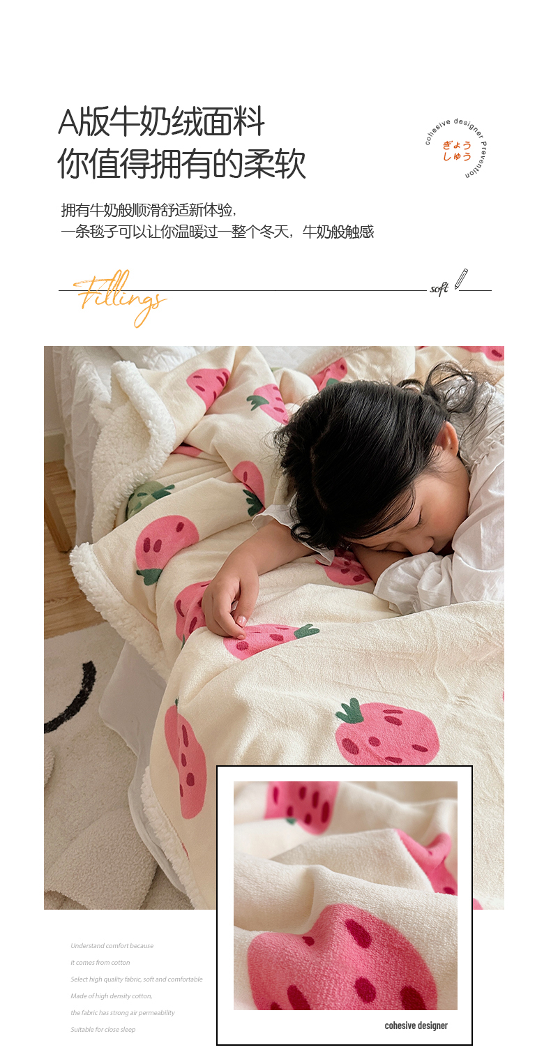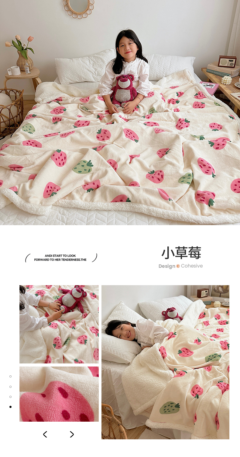 萝莉家纺 2023新款ins加厚牛奶绒羊羔绒毯午睡毯沙发盖毯 小草莓
