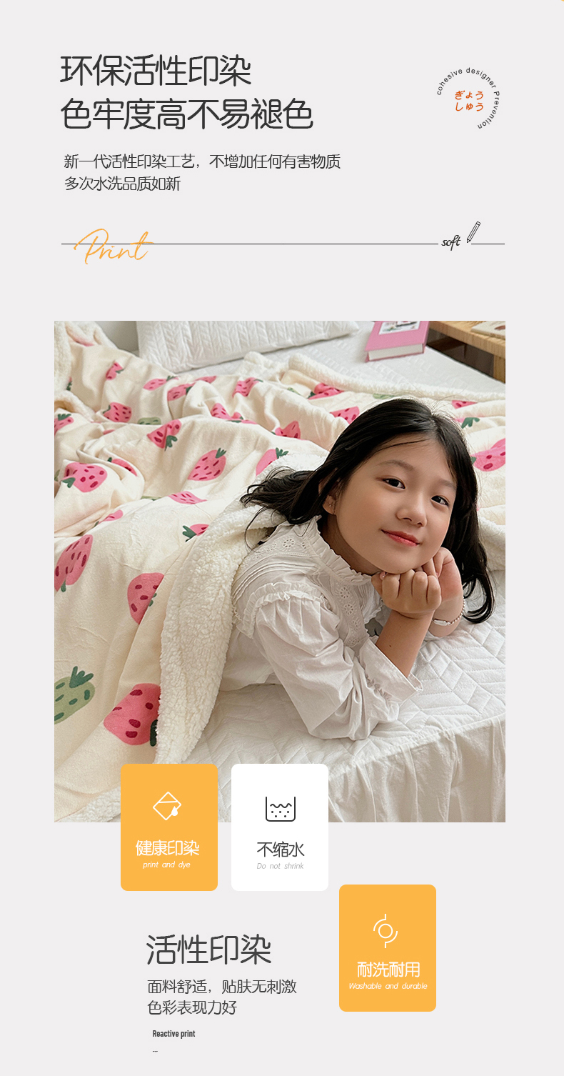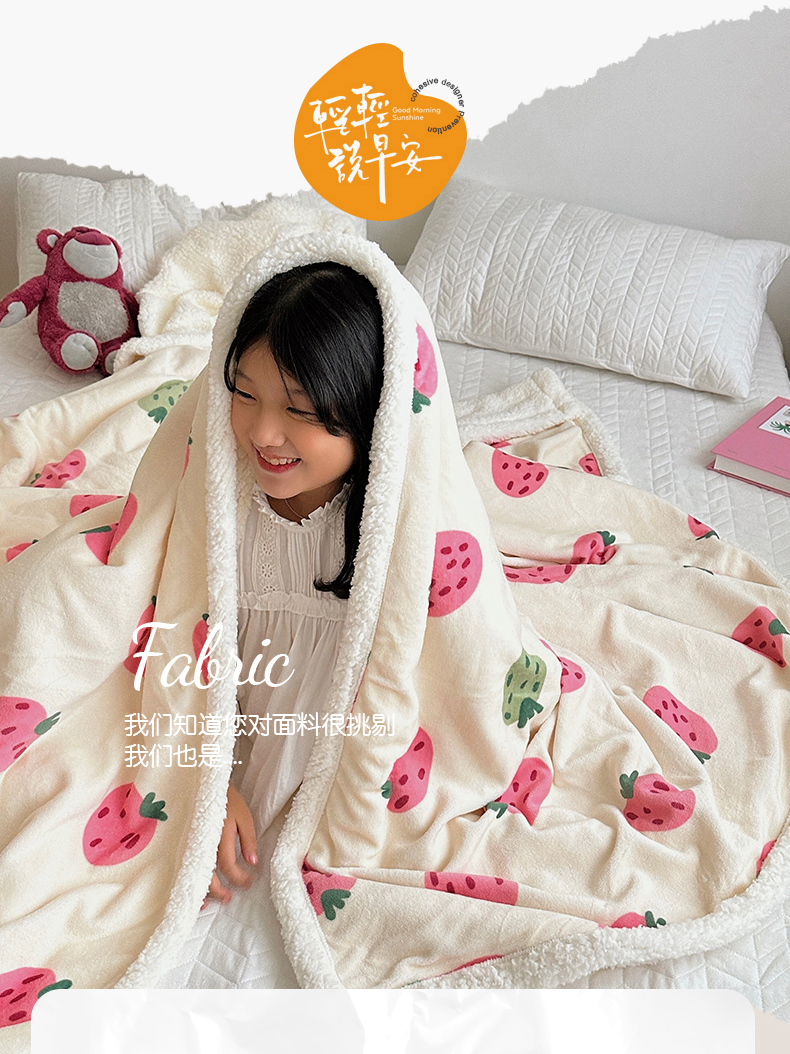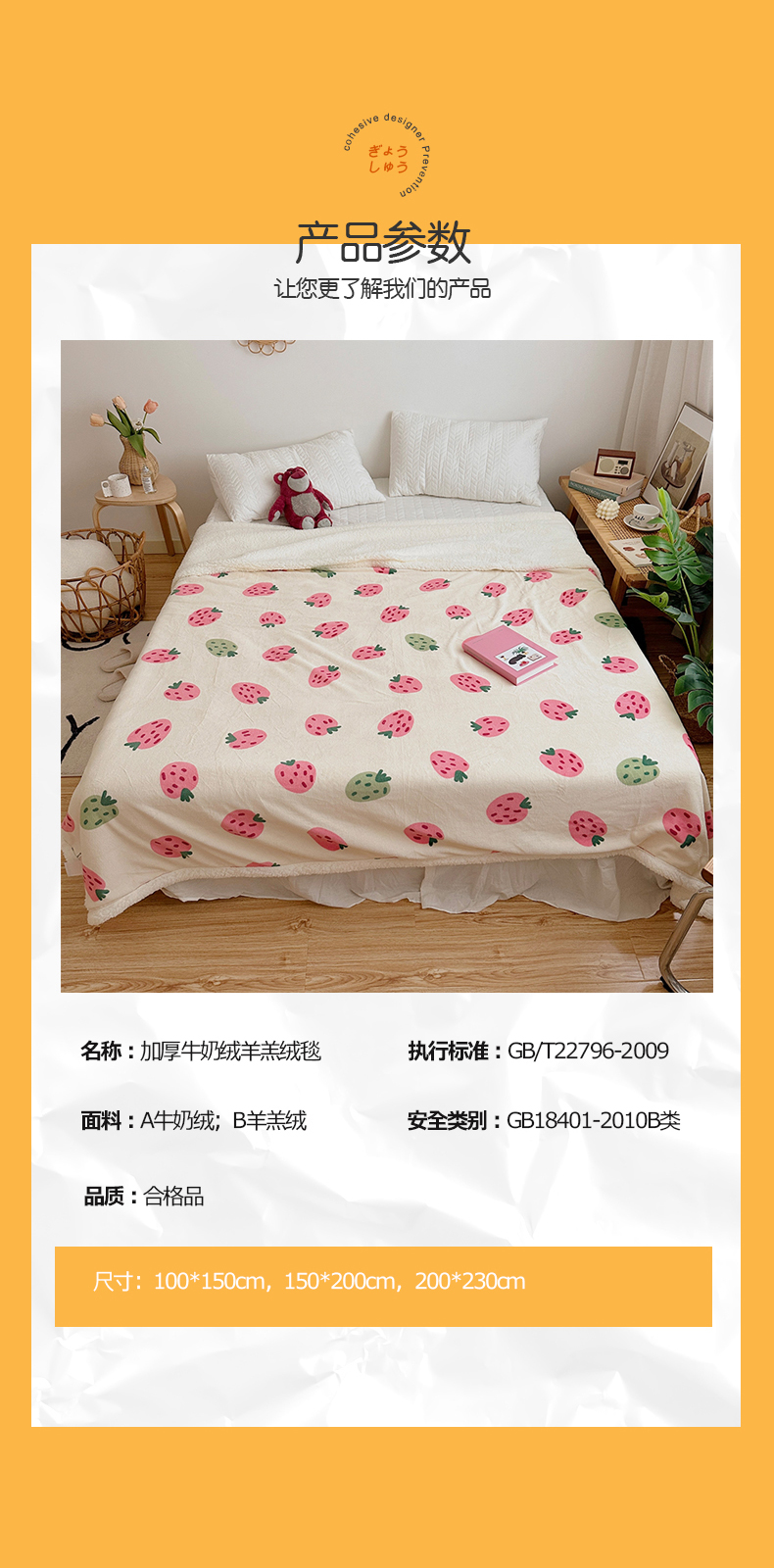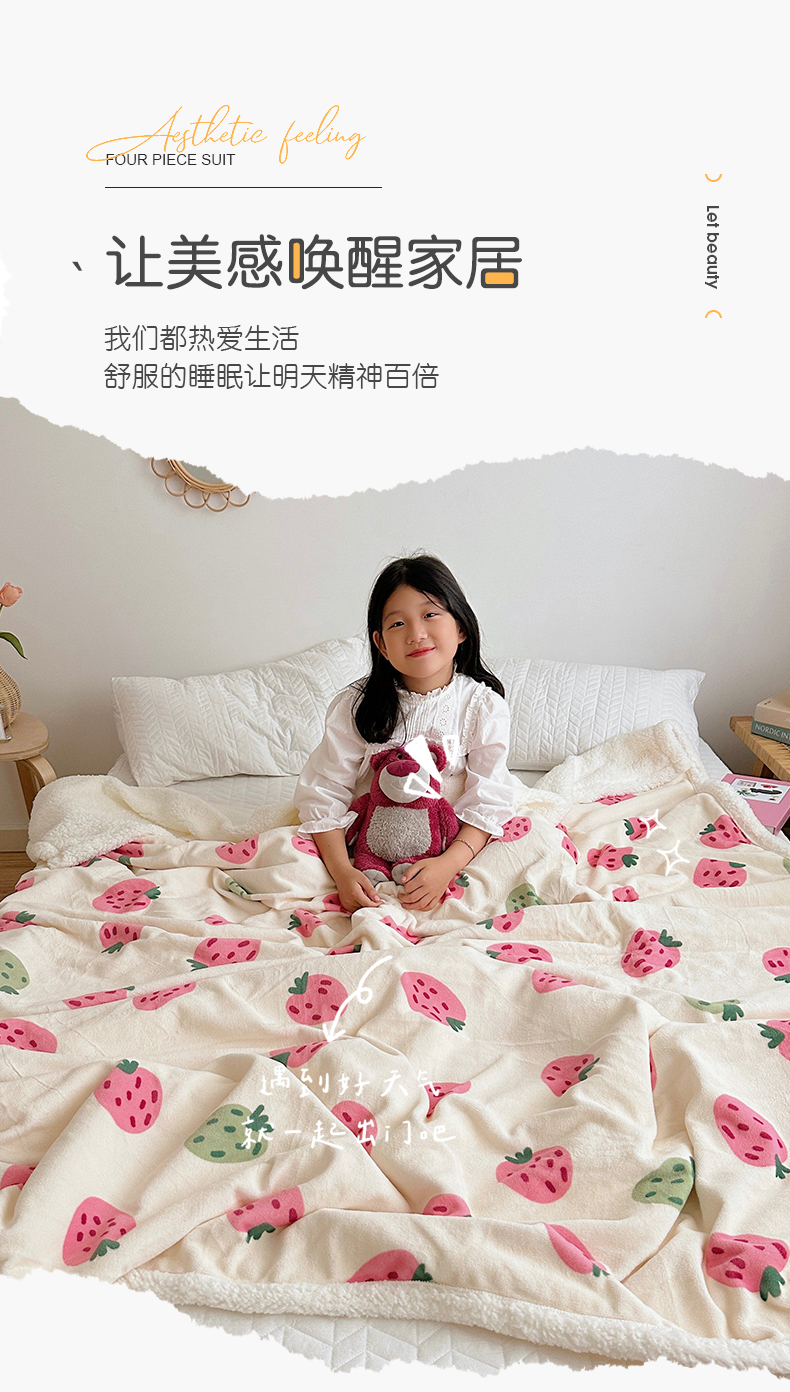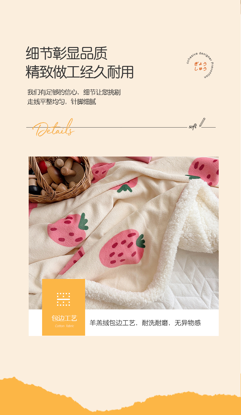萝莉家纺 2023新款ins加厚牛奶绒羊羔绒毯午睡毯沙发盖毯 小草莓