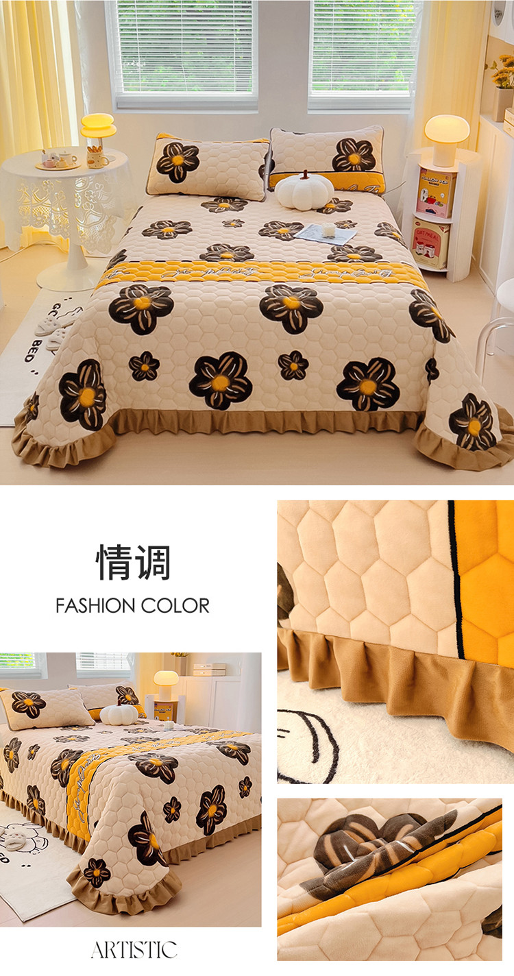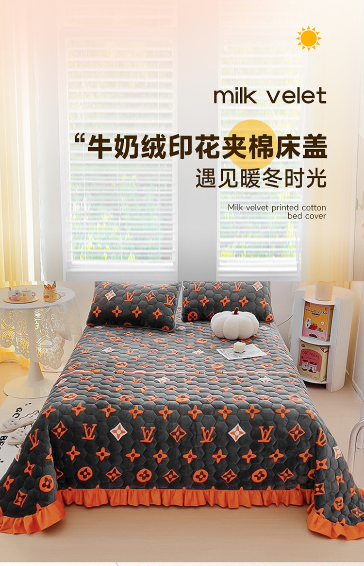 (总)情煊 2023新款牛奶绒印花床盖
