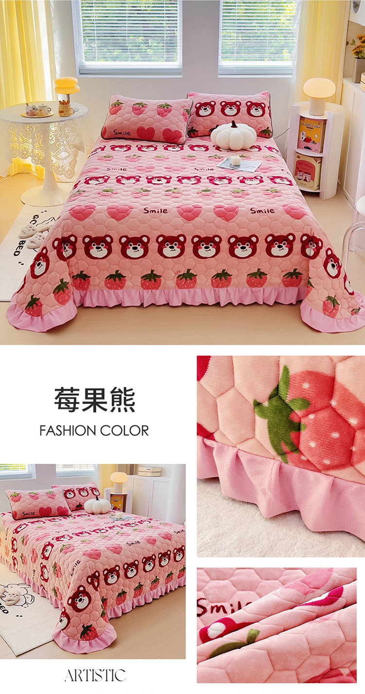 (总)情煊家纺 2025新款保暖牛奶绒夹棉床笠-花边款,一鹿幸福,爱心小熊,豹纹,大力熊,蝶恋,红玫瑰,林深见鹿,秘境,蘑菇小兔,童趣,童真,西高地,银杏叶,紫爱心,三生有杏,蓝大格,大牌风范,太空漫步,乐拼字母,莓果熊