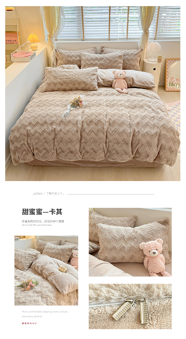 莱米 2023新款兔绒四件套 甜蜜蜜—卡其