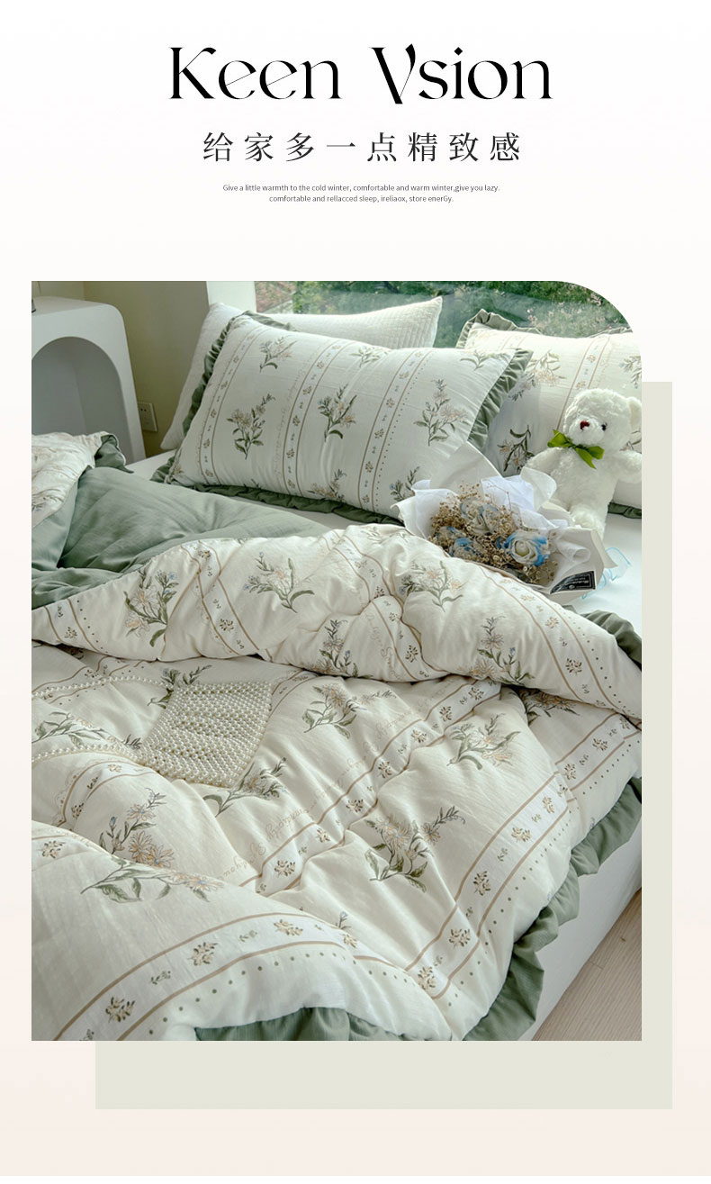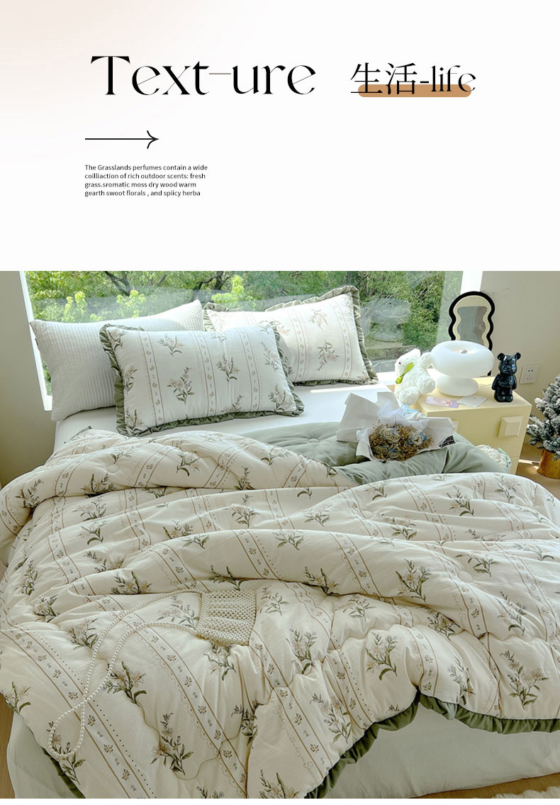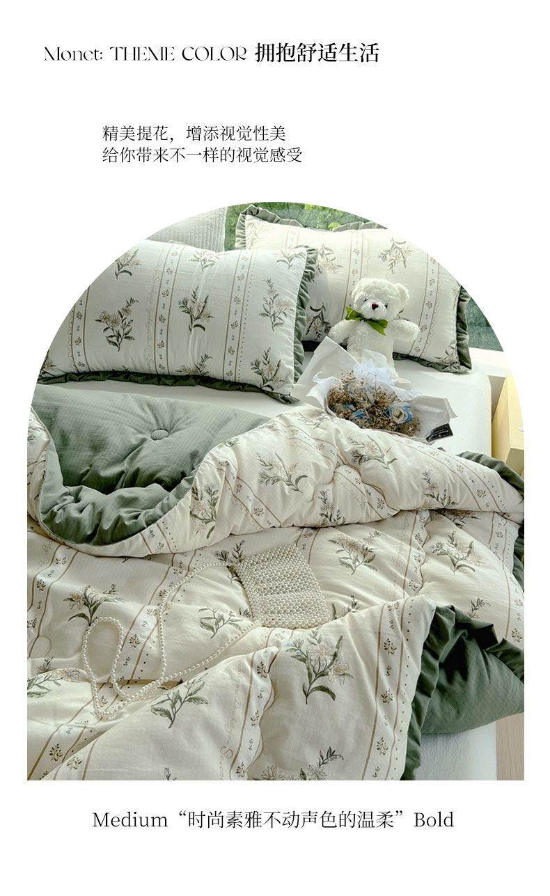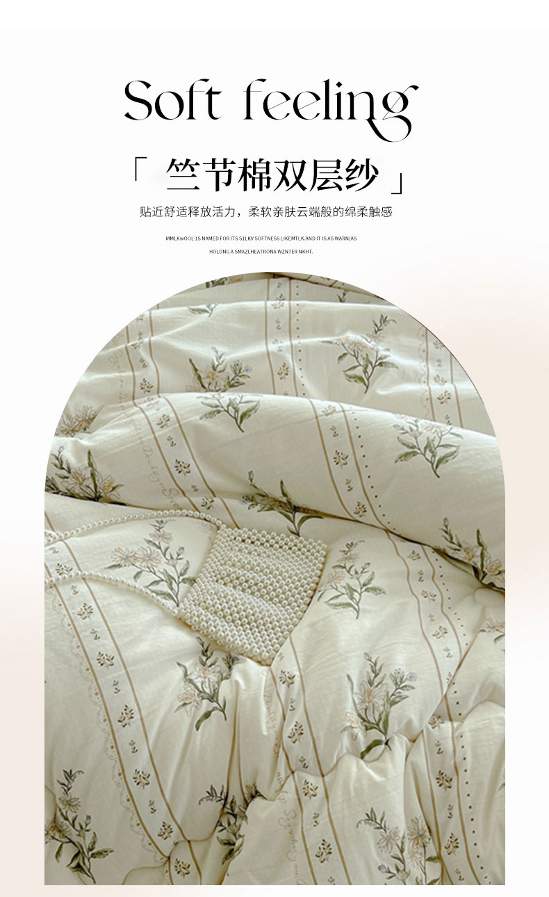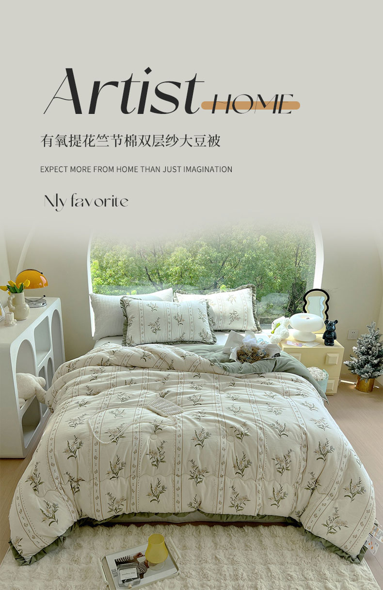 商品名称:典冠 2024新款有氧提花竺节棉双层纱大豆被春秋被冬被 绿野仙踪