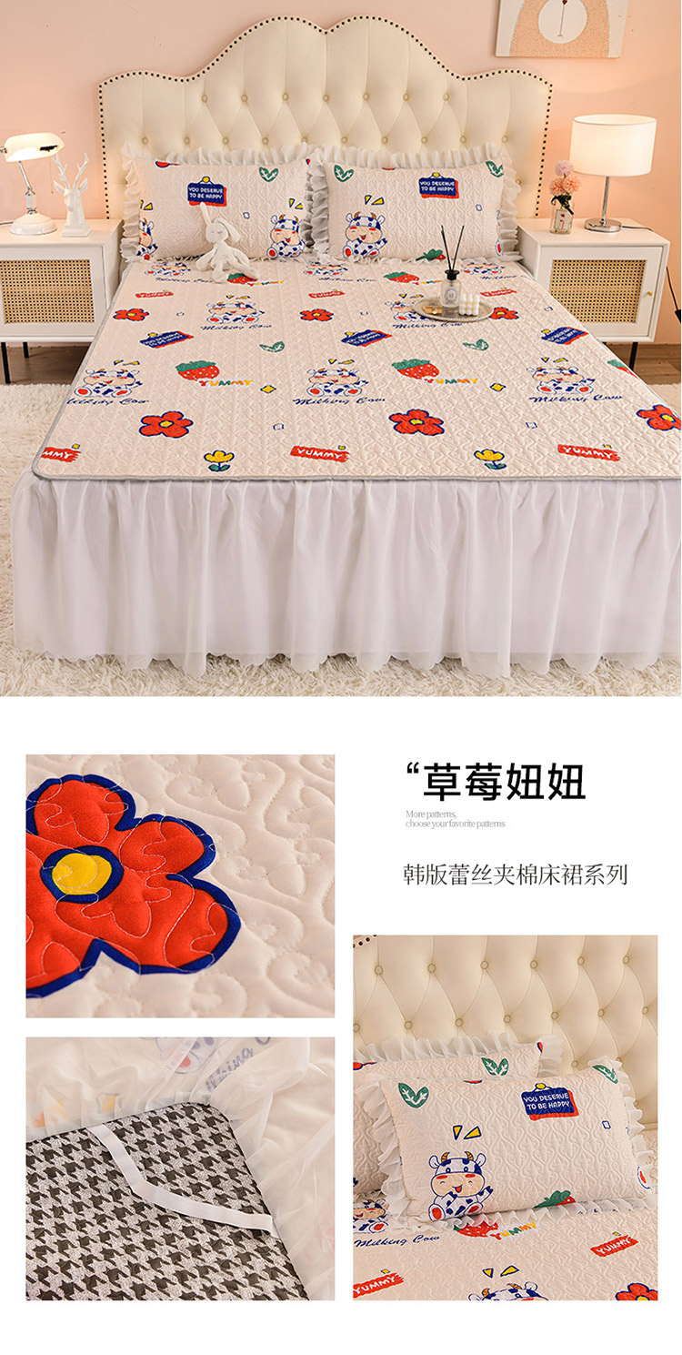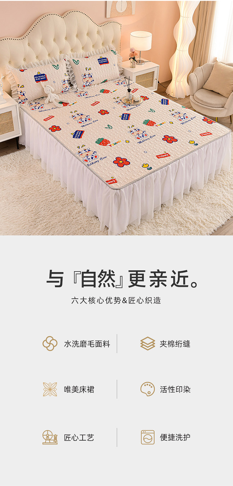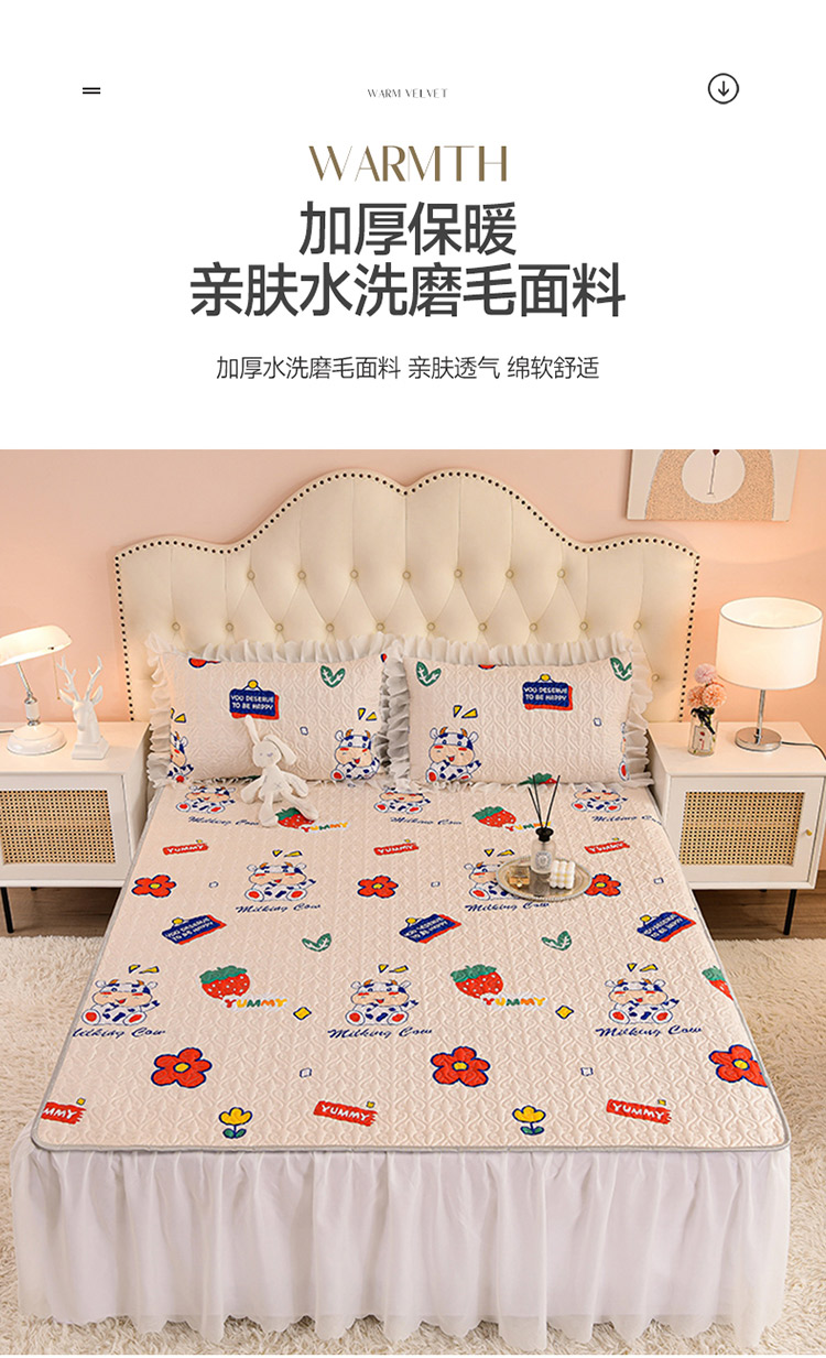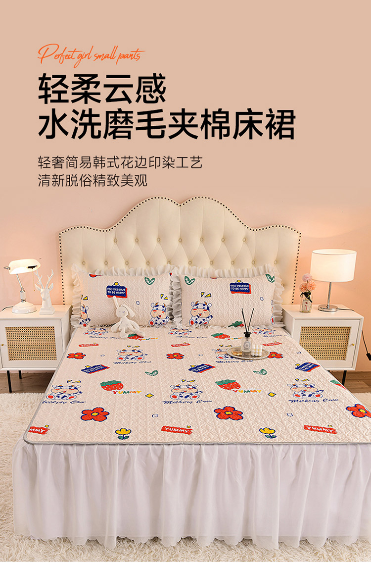 商品名称:艾兜坊 2023新款轻柔云感水洗磨毛夹棉床裙草莓妞妞