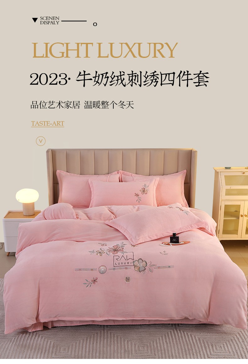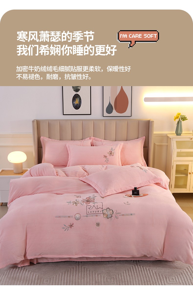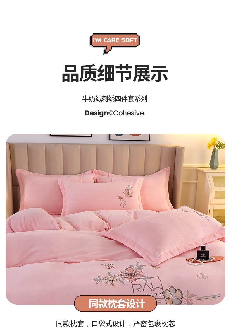 商品名称:富之航 2023新款牛奶绒刺绣四件套 花香蝶影-粉