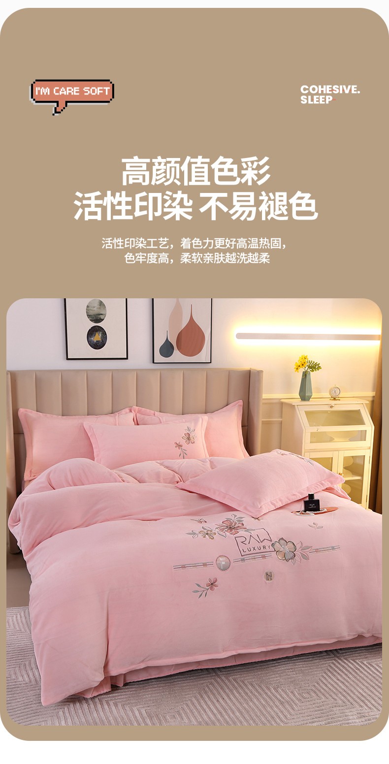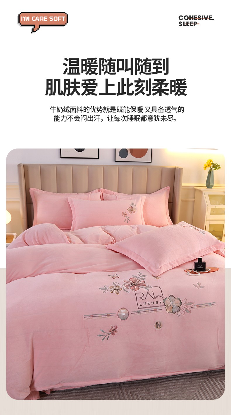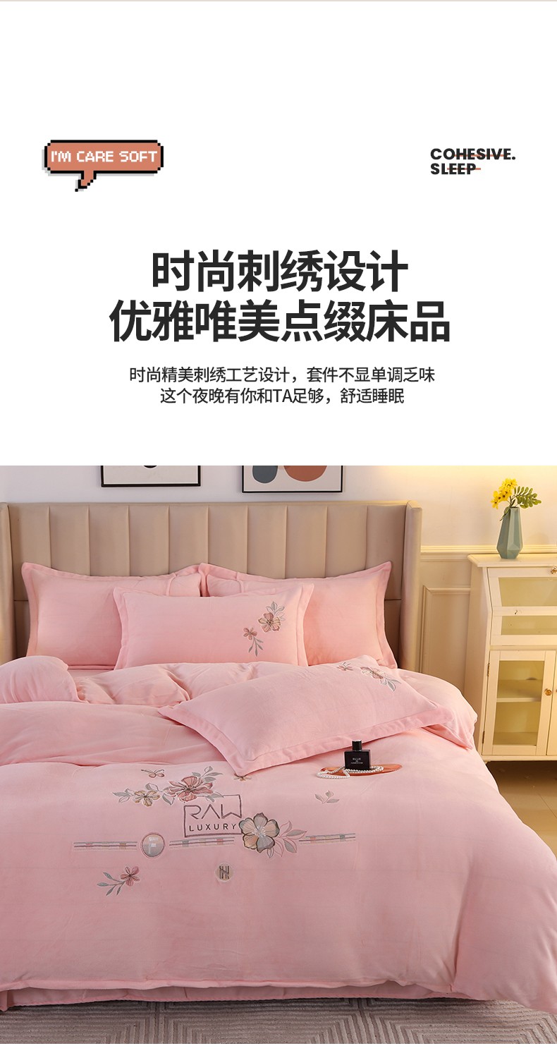 (总)富之航 2024新款宝宝绒刺绣四件套加厚牛奶绒绣花四件套婴儿绒四件套,邂逅-宝蓝,邂逅-豆沙粉,邂逅-绯红,邂逅-湖绿,邂逅-活力橙,邂逅-蔷薇粉,邂逅-蔚蓝,邂逅-湘妃玉,邂逅-银灰