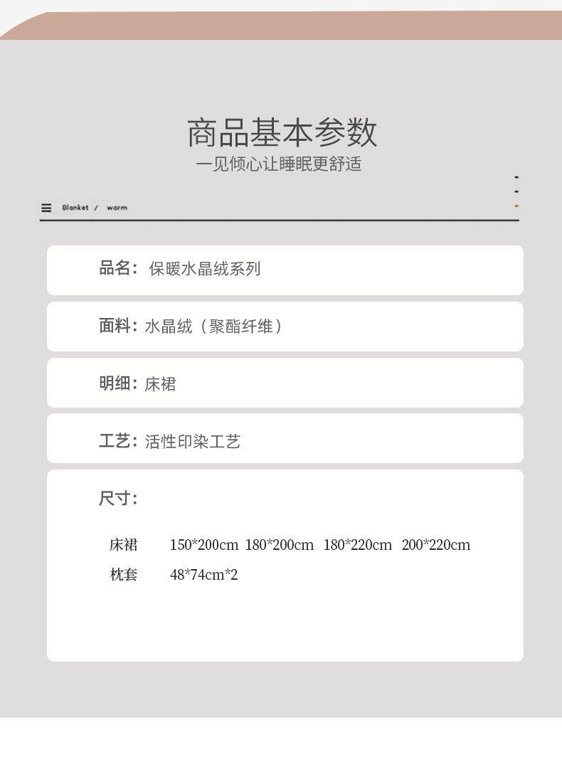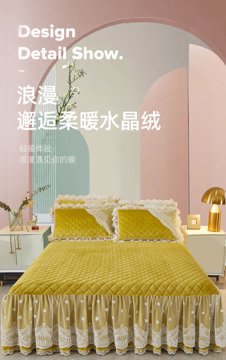 商品名称:2023新款水晶绒保暖单床裙爱妮系列 金槟
