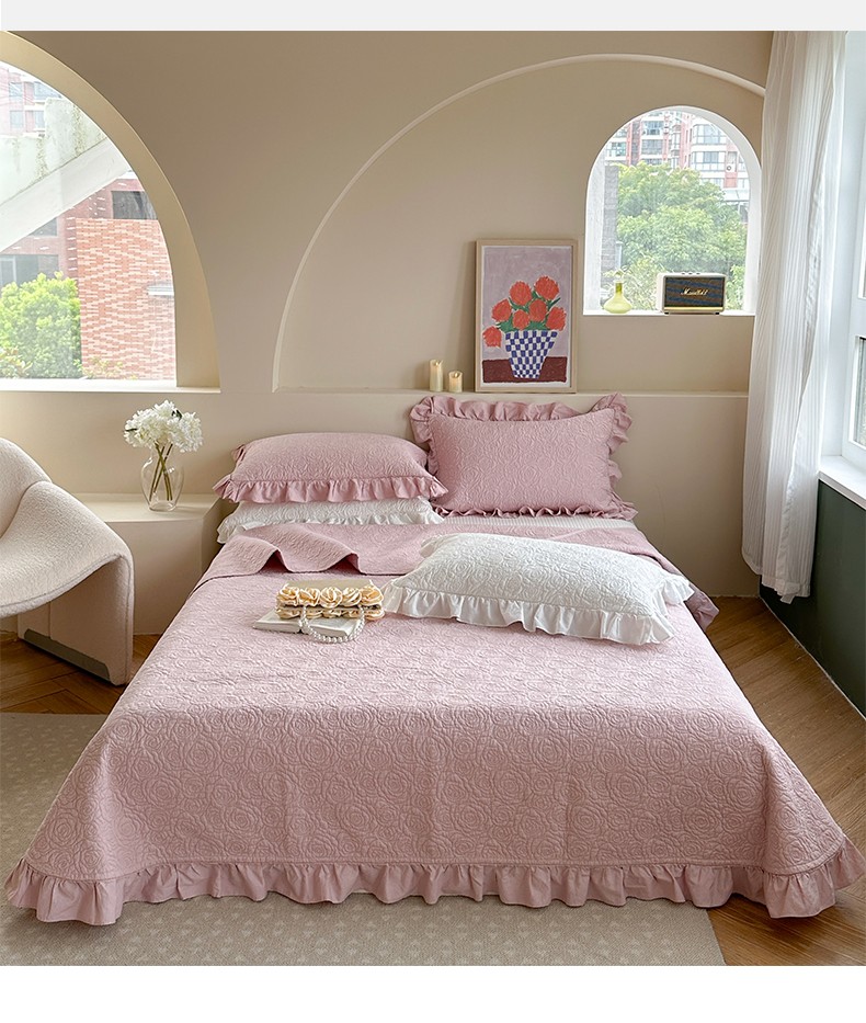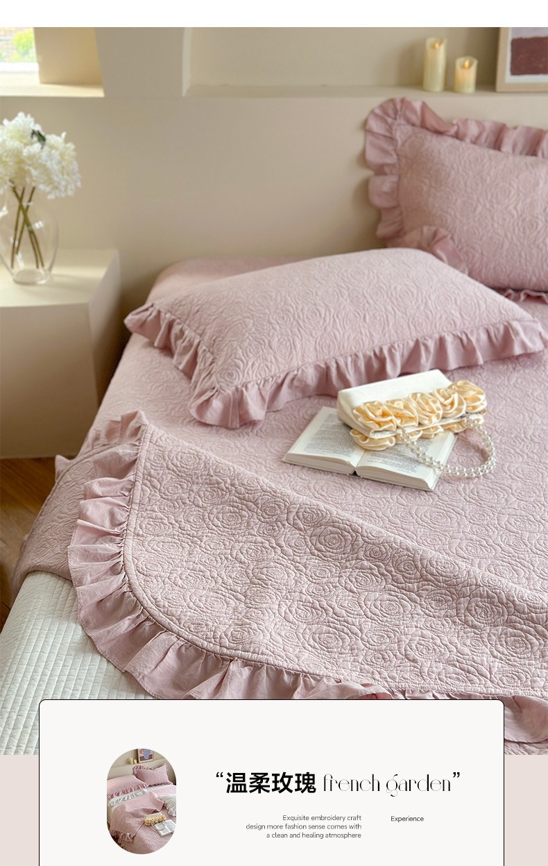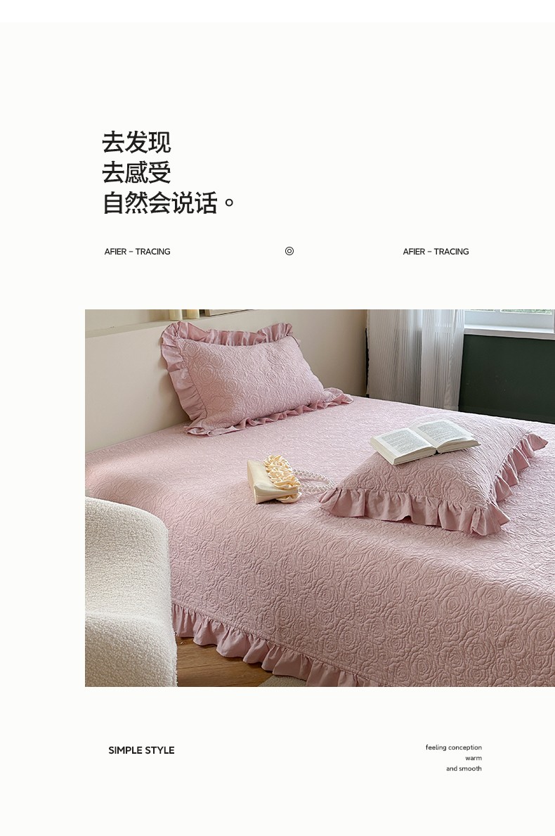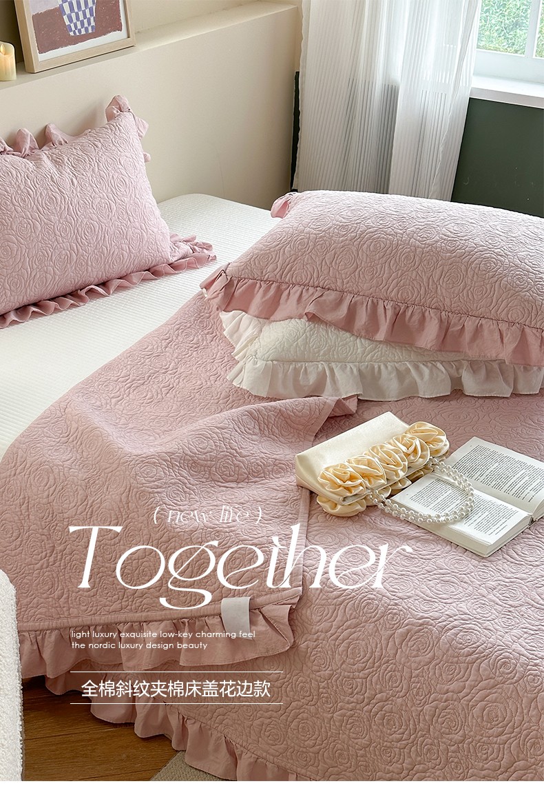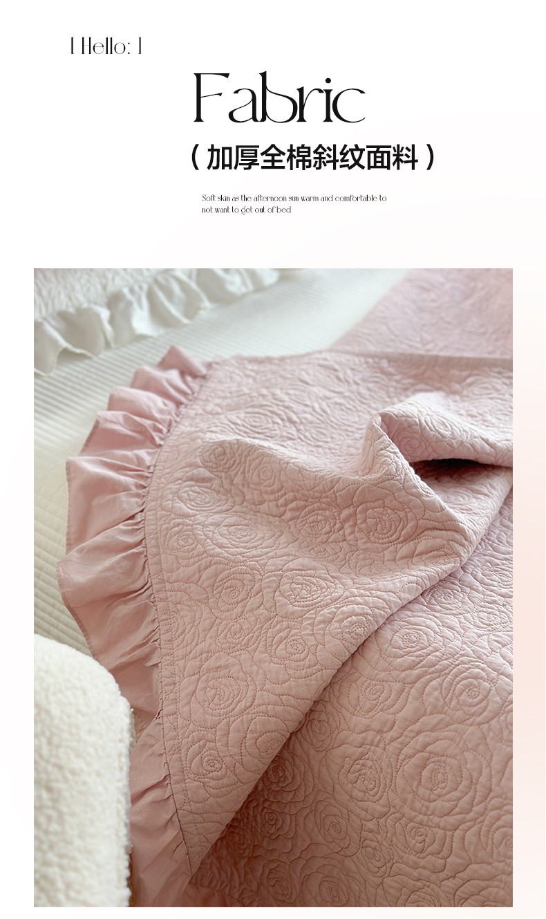 诗黛尔 2023秋冬新款全棉斜纹夹棉床盖花边款-玫瑰花语系列 浅粉色