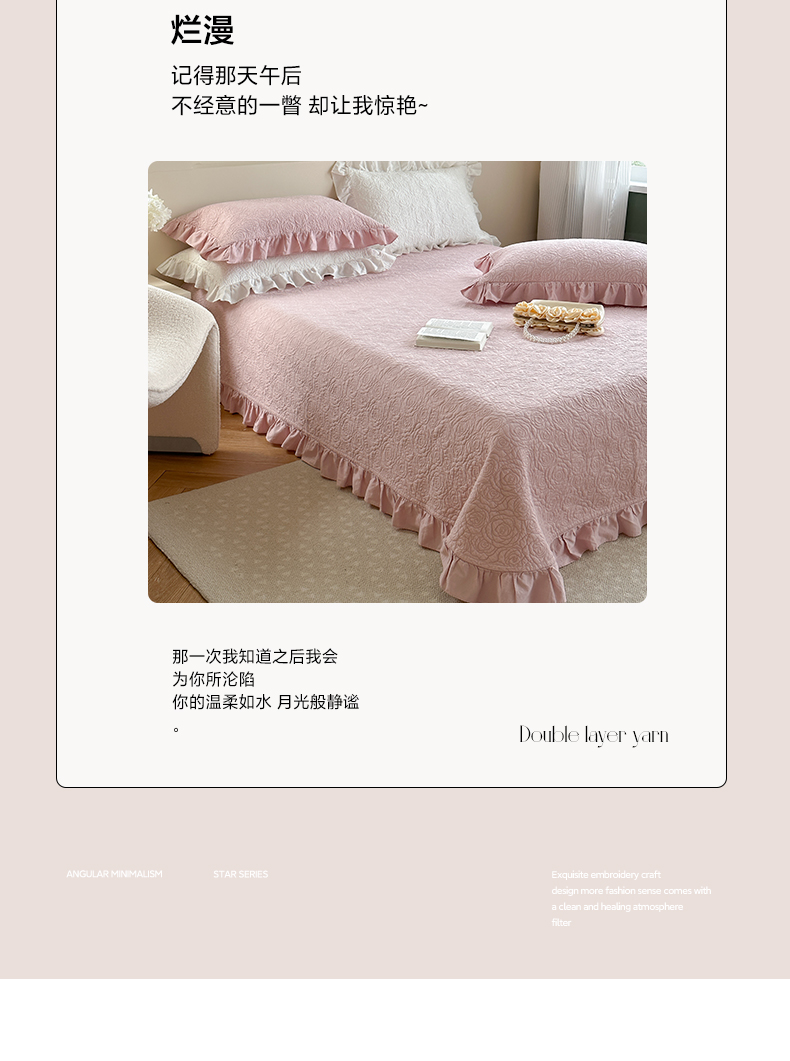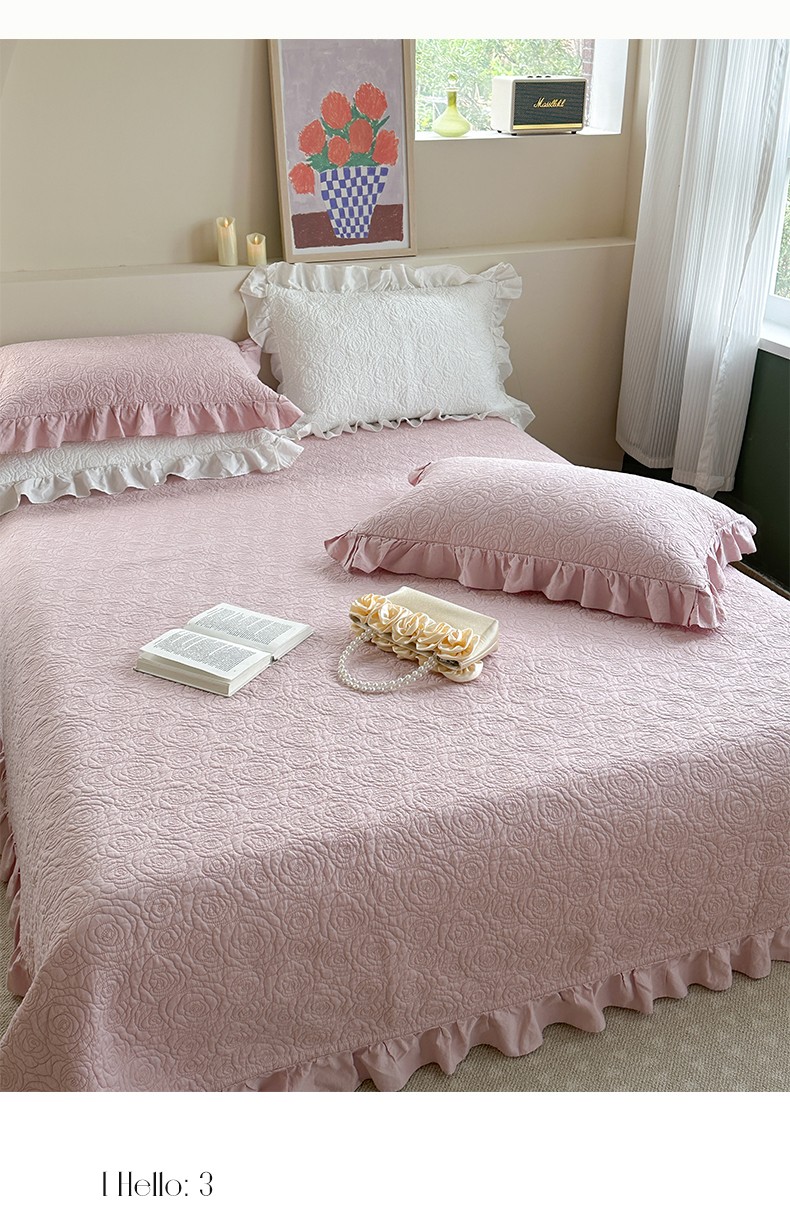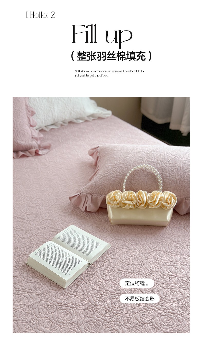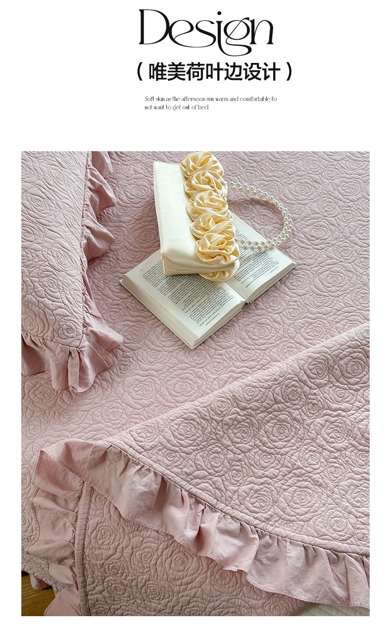 商品名称:诗黛尔 2023秋冬新款全棉斜纹夹棉床盖花边款-玫瑰花语系列 浅粉色