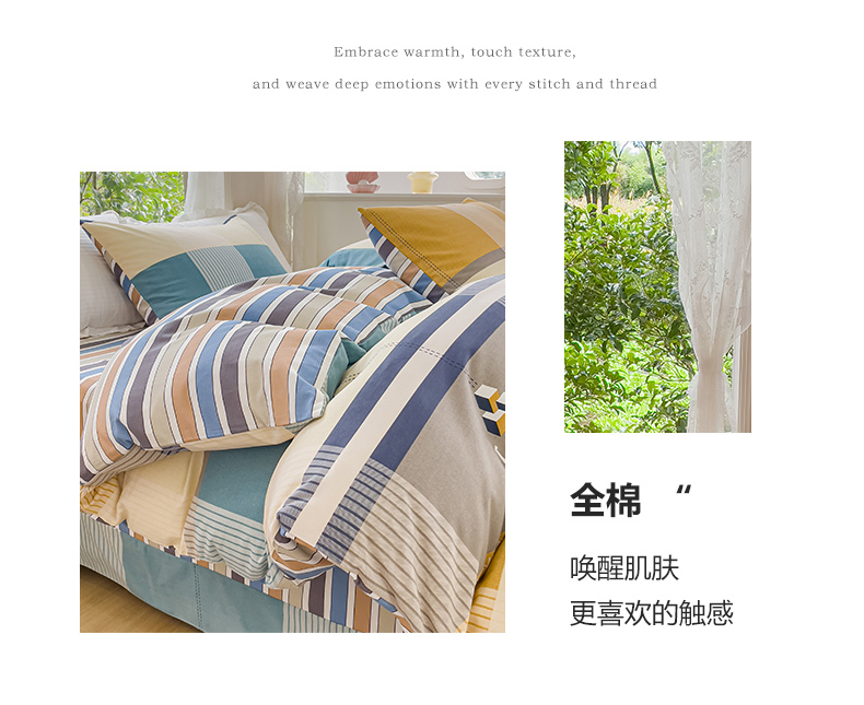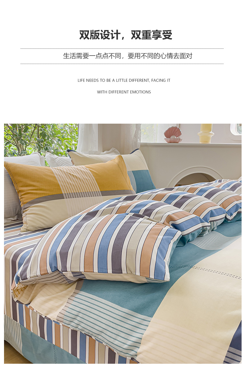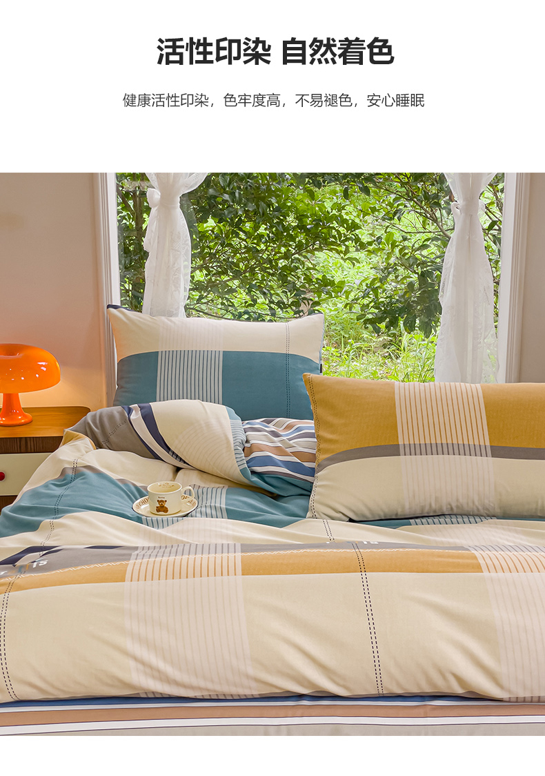 (总)感遇家纺 2022新款全棉印花四件套,格子小花,黑格恐龙,蓝色心情,浅暖