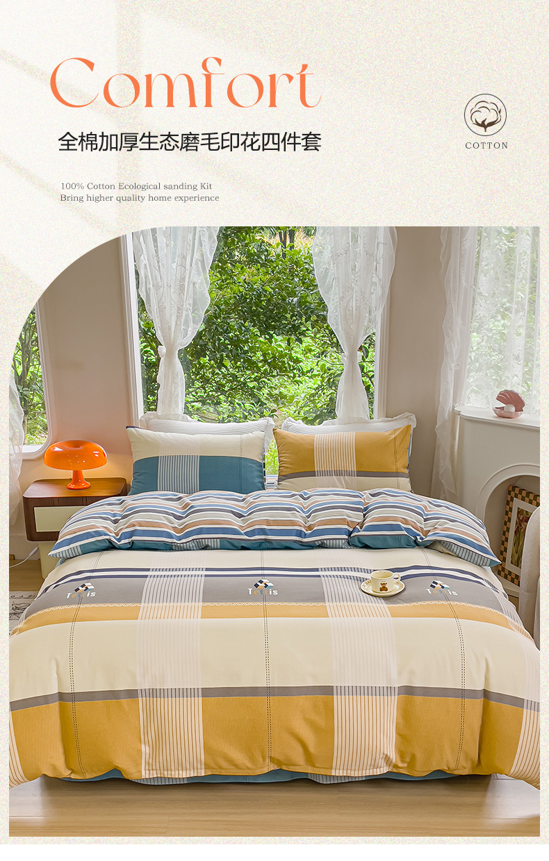 商品名称:感遇家纺 2023新款印花系列全棉生态磨毛加厚四件套 雅格