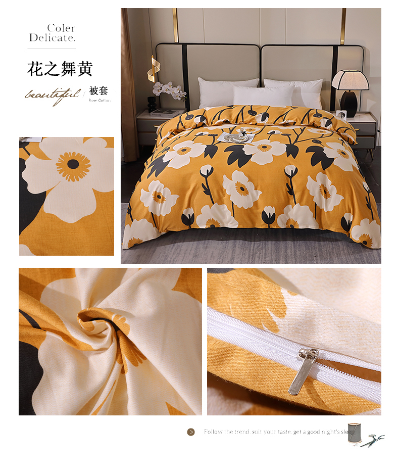 商品名称:晶缦 2023新款格林系列全棉活性磨毛单被套 花之舞黄