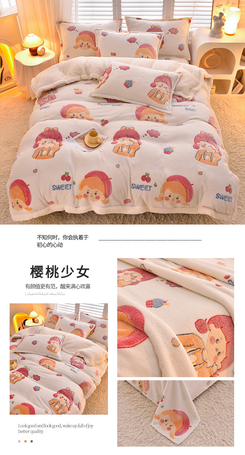 当前位置: 91家纺网 > 商品网购 > 毛毯休闲毯绒毯 > 毛毯 > 同田家纺 2023年新款雪花绒&羊羔绒毛毯 樱桃少女