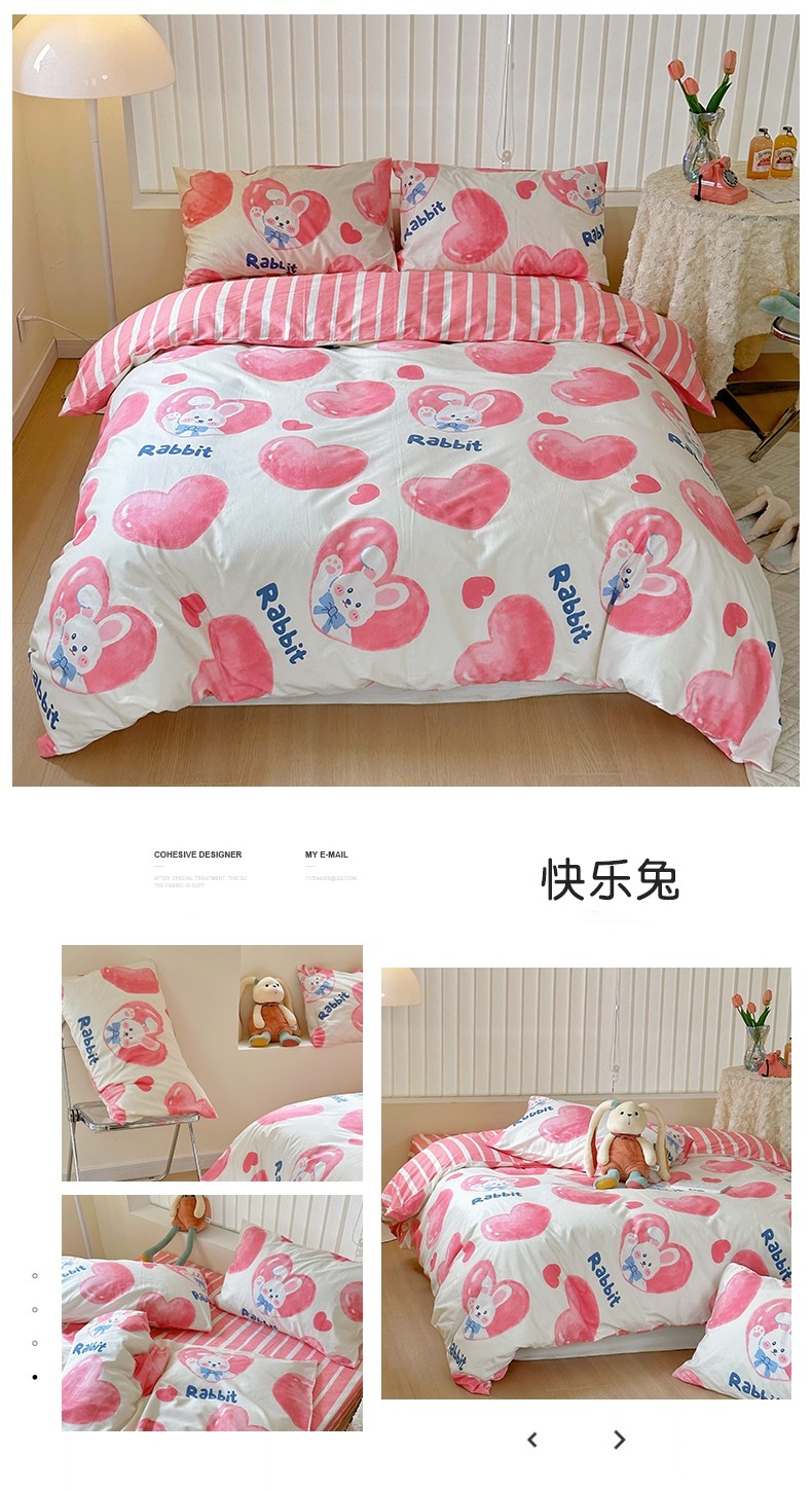 (总)宜家坊 2023新款直播韩版印花花边款牛奶绒四件套,比格熊,草莓兔,春暖花开,告白,加油鸭,流星花园,萌萌熊,牛油果,千鸟格,小女孩,一见倾心,郁金香