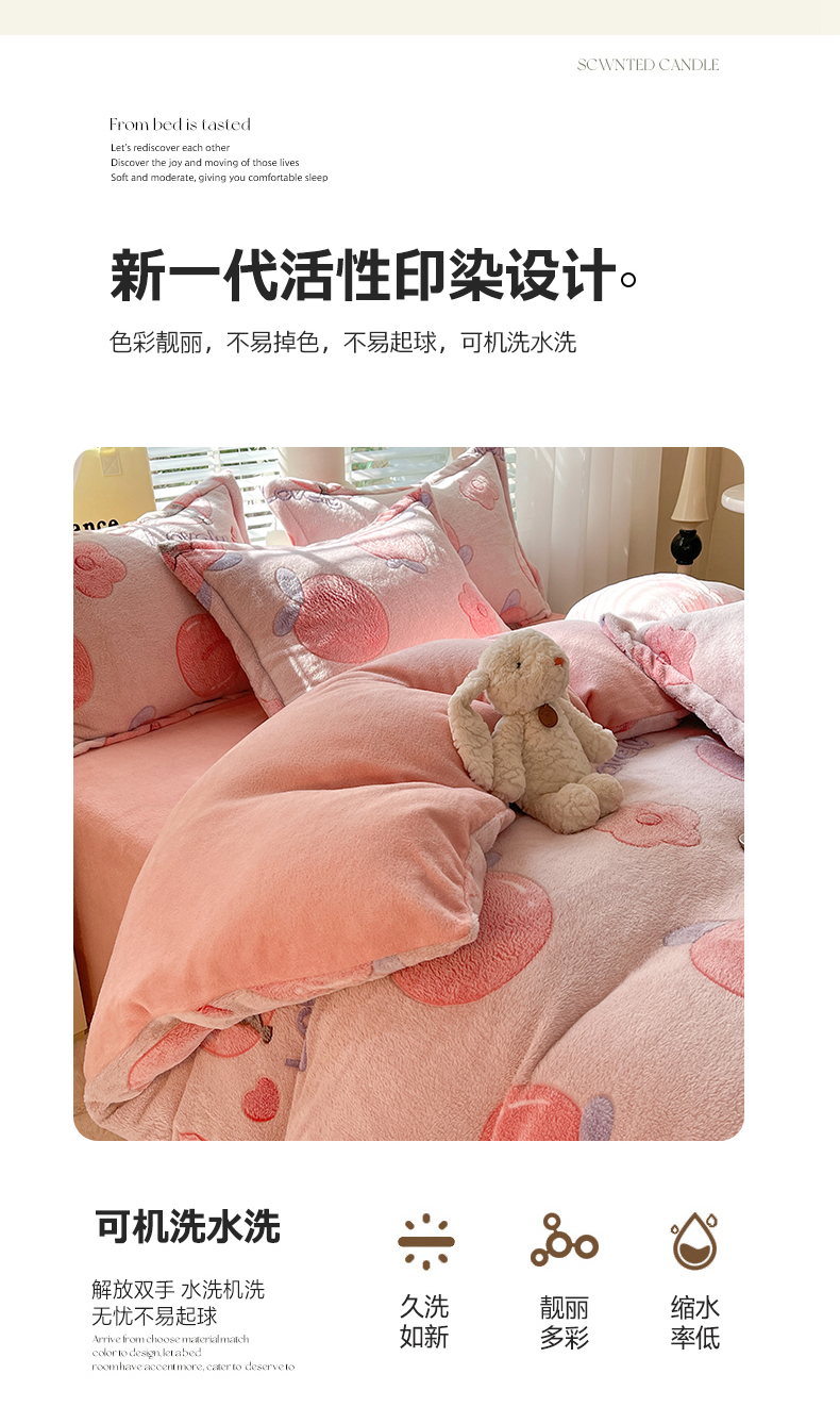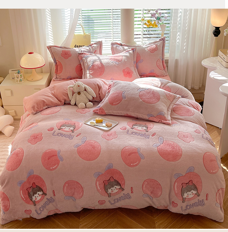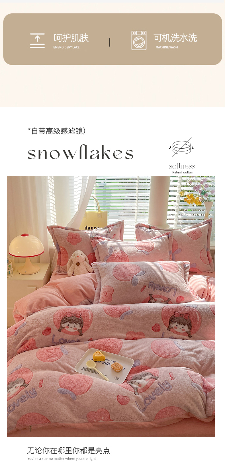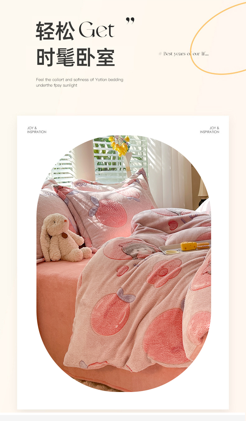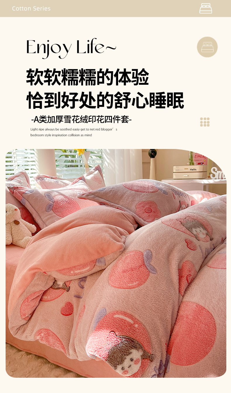 当前位置: 91家纺网 > 商品网购 > 床品套件 > 四件套 > 全棉普通四件套 > 妖妖家纺 2023新款妖妖雪花绒单品三四件套 蜜桃女孩