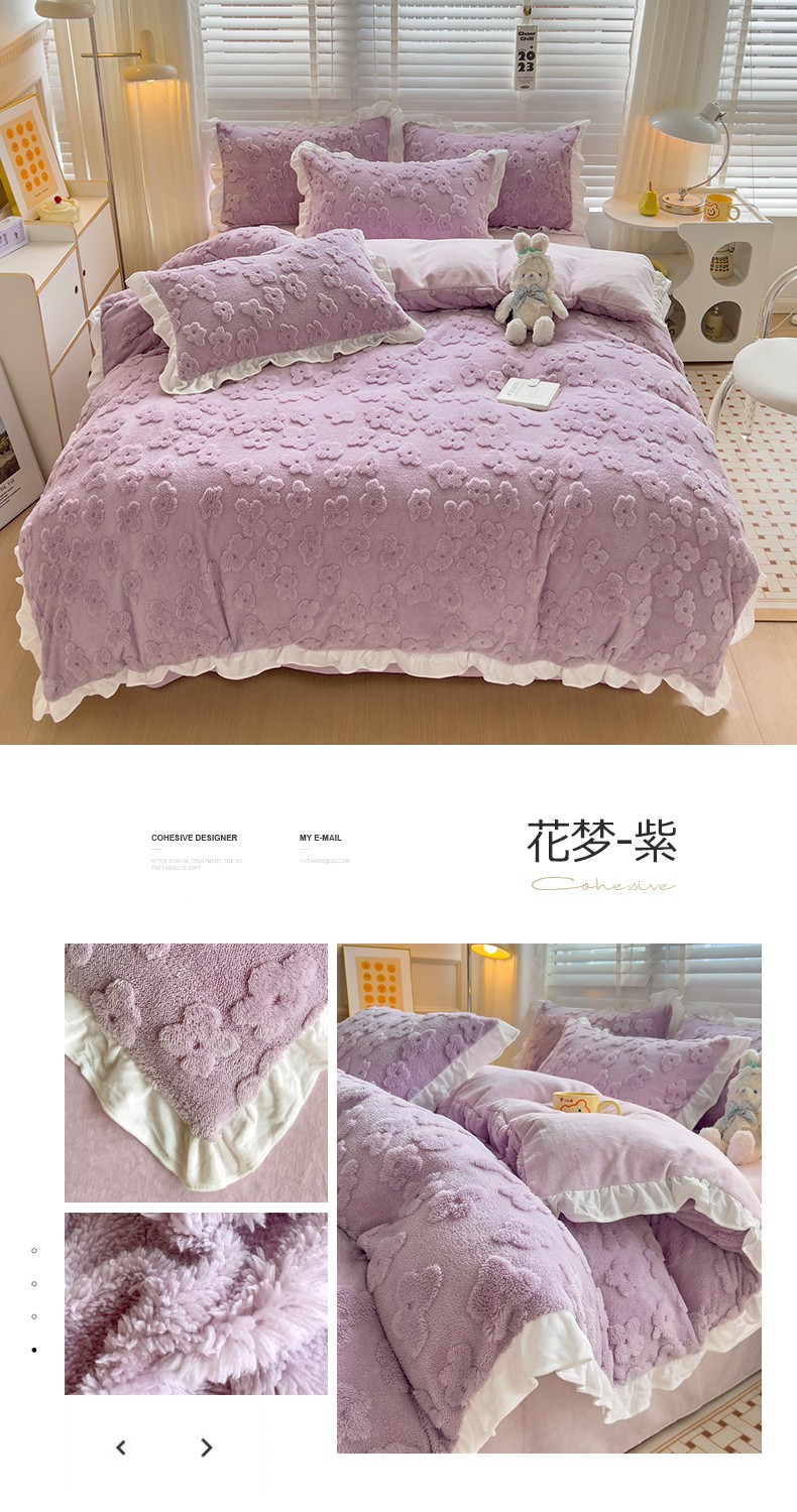 商品名称:澳梵 2023新款温柔梦境花梦塔芙绒韩版四件套 花梦-紫色