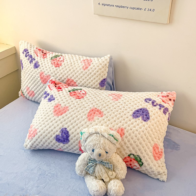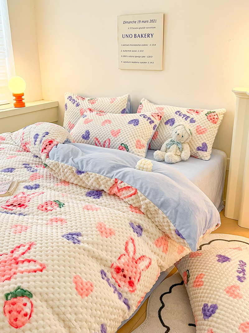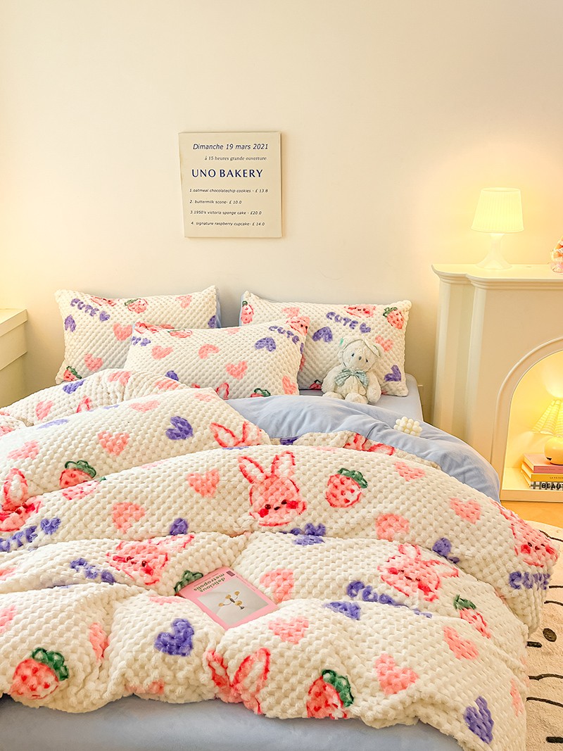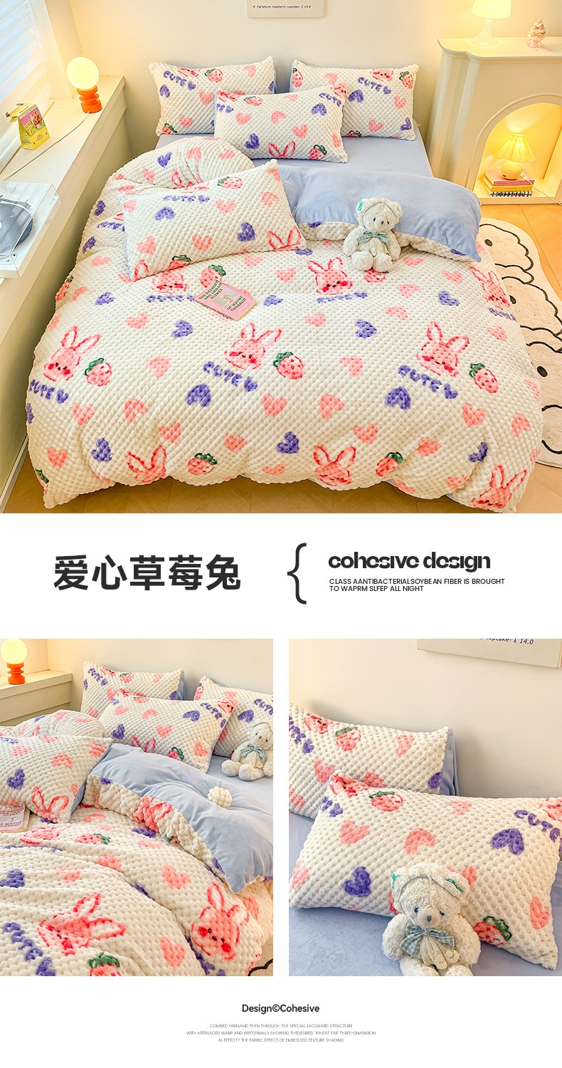 商品名称:澳梵家居 2023新款印花豆豆绒牛奶绒四件套 爱心草莓兔