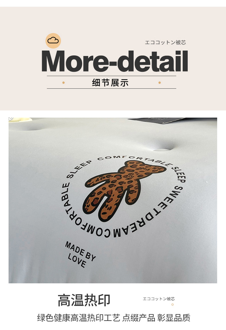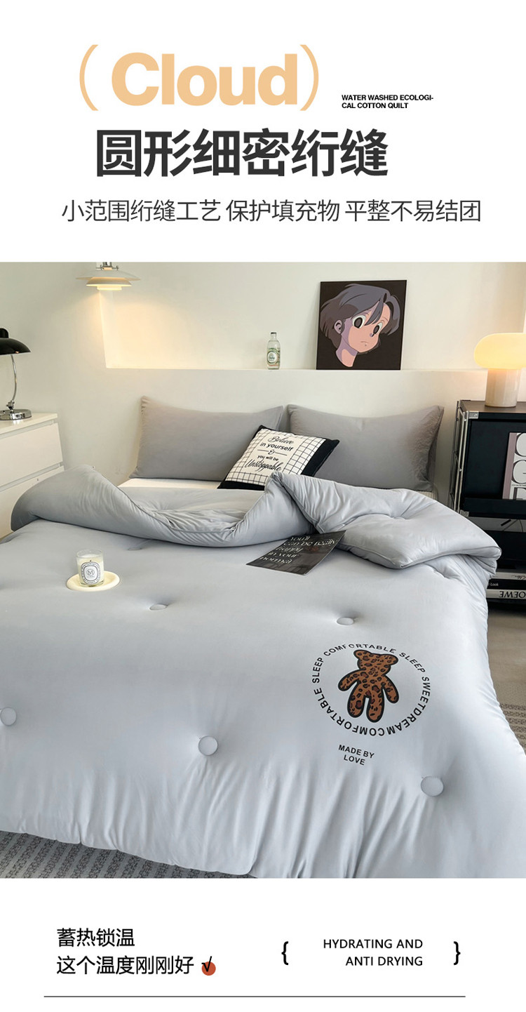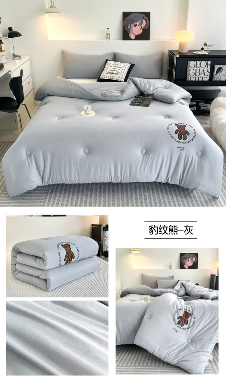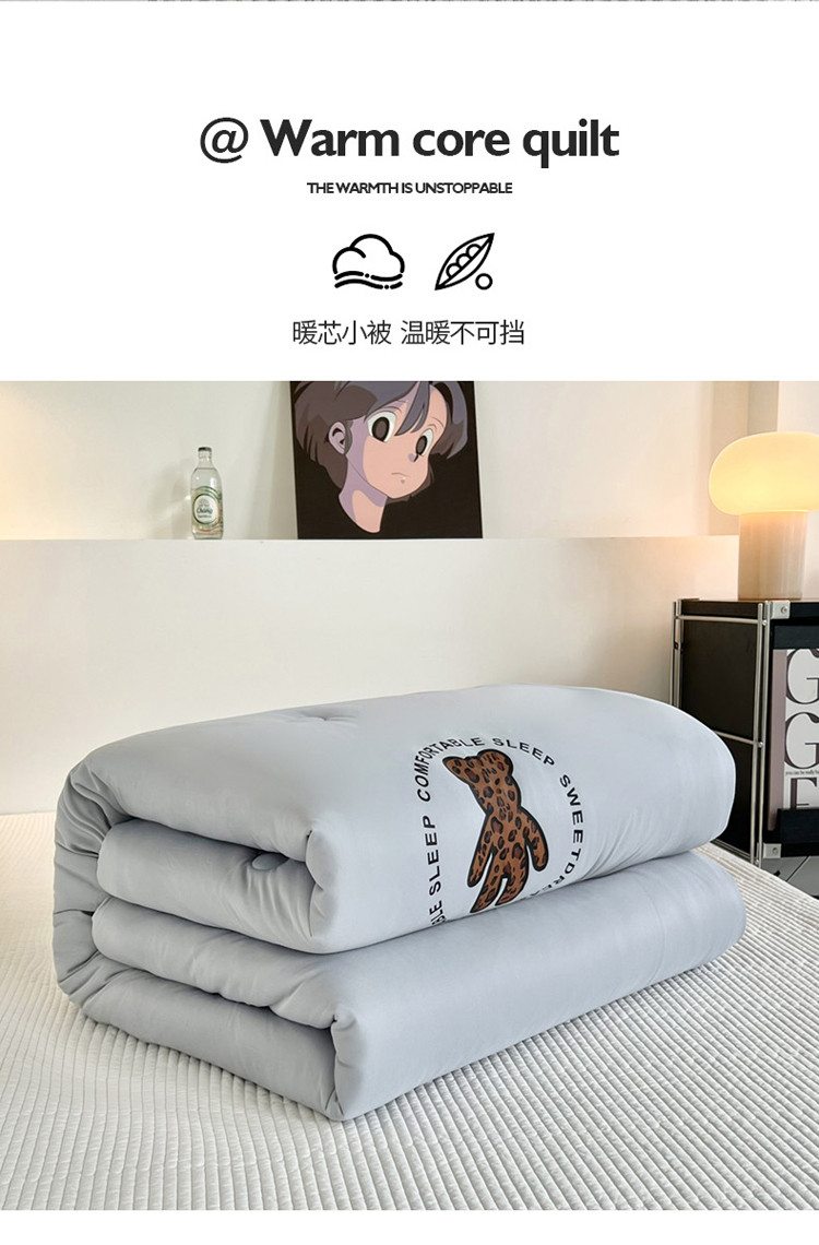 商品名称:寐居 2023新款A类云柔棉被芯-烫画豹纹熊-灰