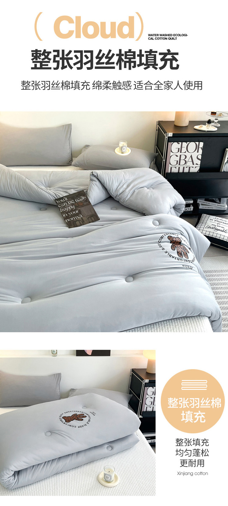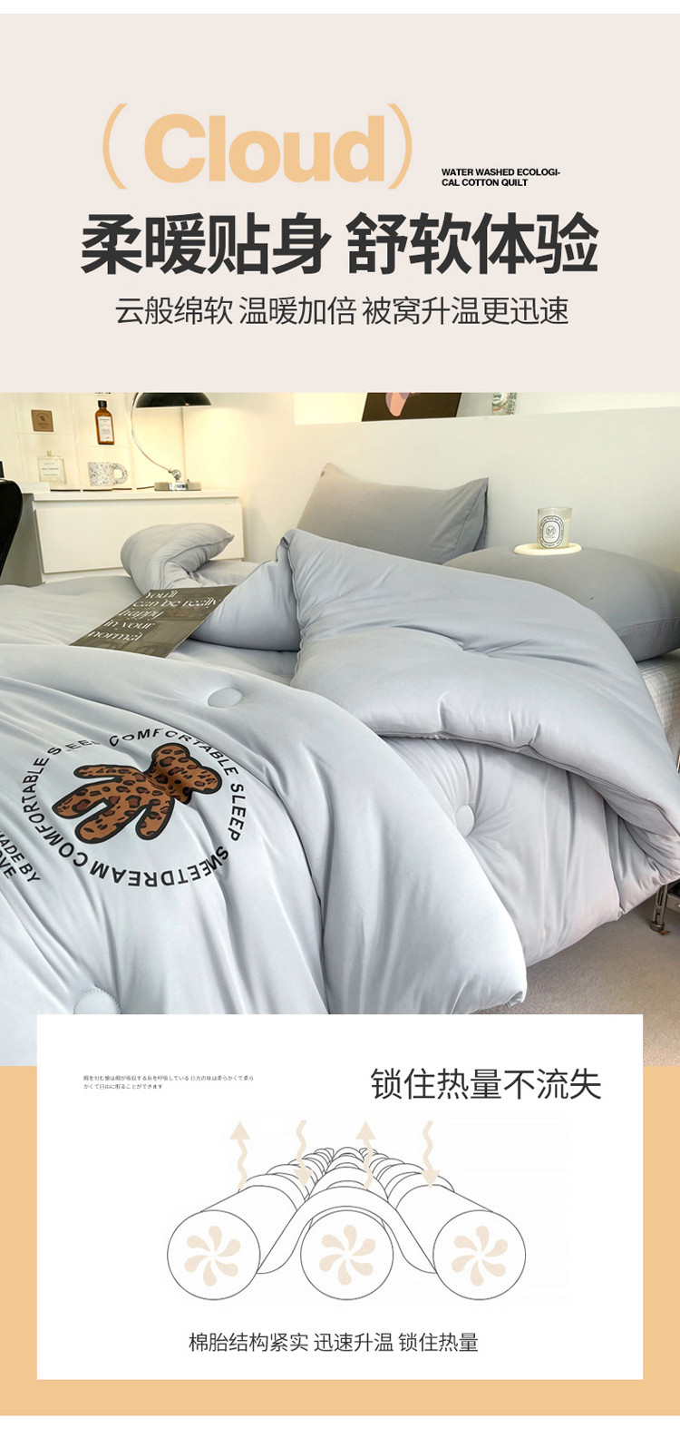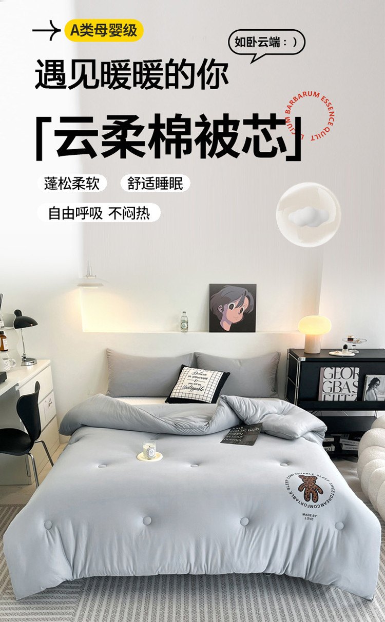 商品名称:寐居 2023新款A类云柔棉被芯-烫画豹纹熊-灰