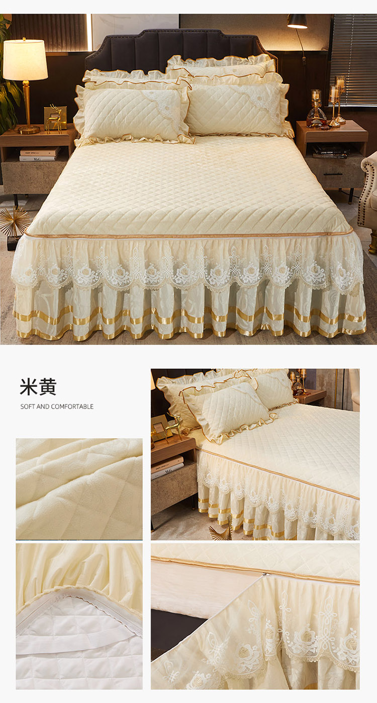 恋尚 2023新款天鹅绒可脱卸夹棉床裙 床盖四件套 床裙 米黄