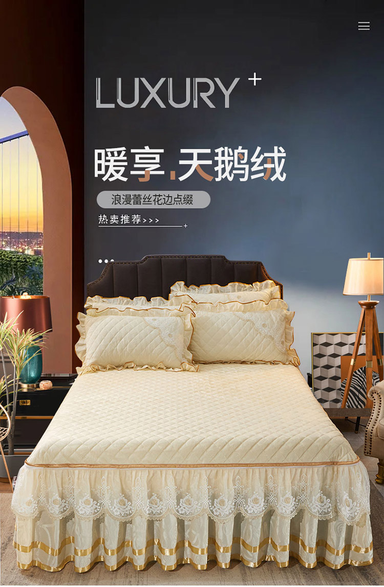 商品名称:恋尚 2023新款天鹅绒可脱卸夹棉床裙 床盖四件套 床裙 米黄