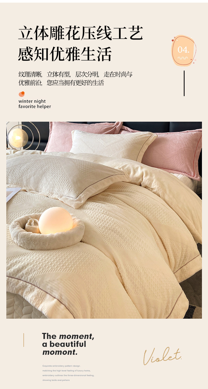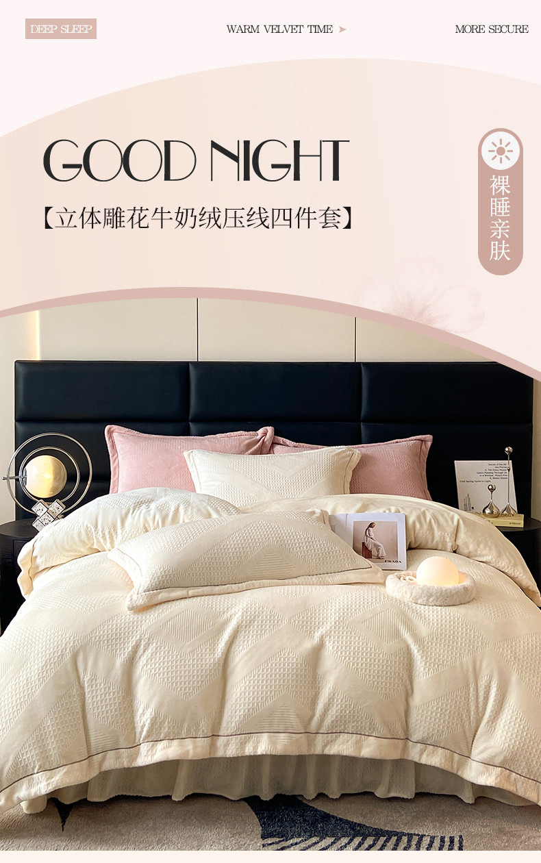 (总)美伦美焕 2025新款加厚雕花绒床盖款四件套-浅叶,浅叶-粉玉,浅叶-卡其,浅叶-绅士灰,浅叶-蔚蓝,浅叶-胭脂红