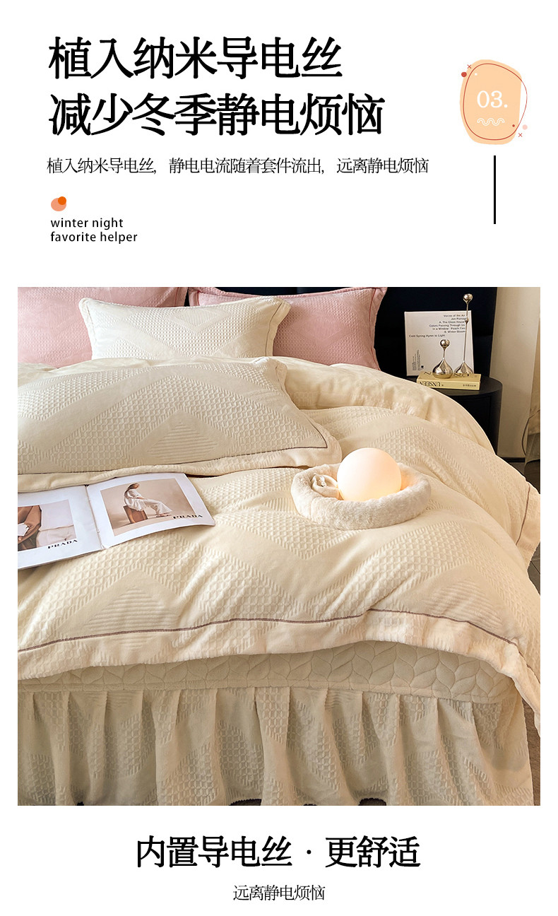 商品名称:美伦美焕2023新款纯色立体雕花牛奶绒床盖四件套床裙款式 米白