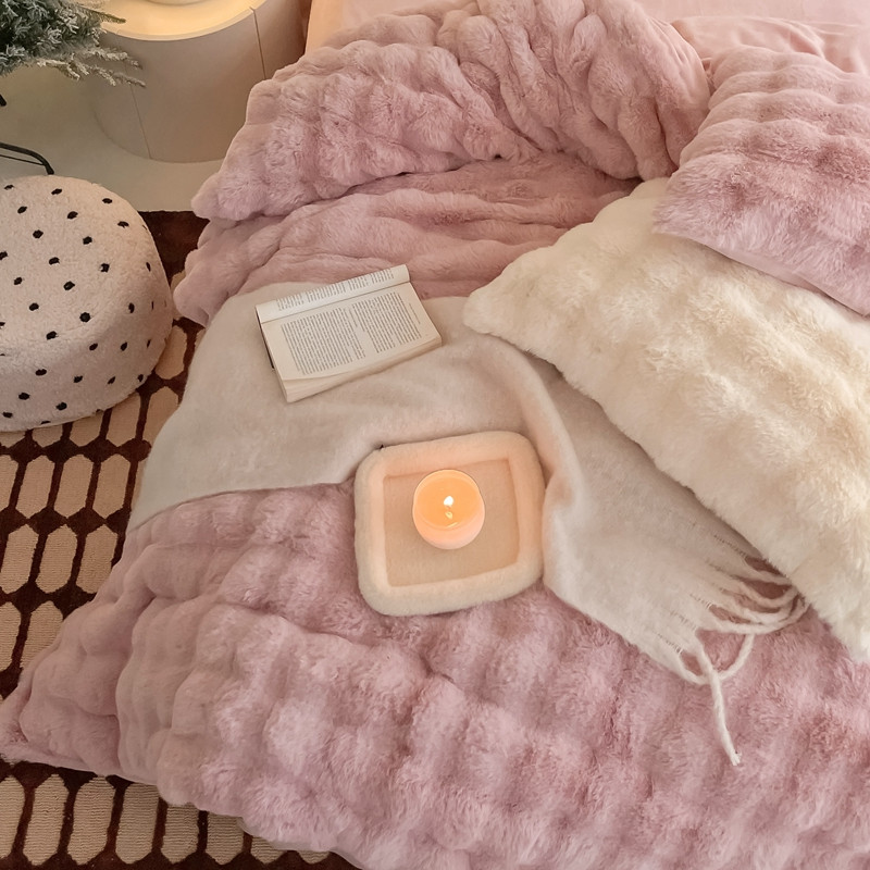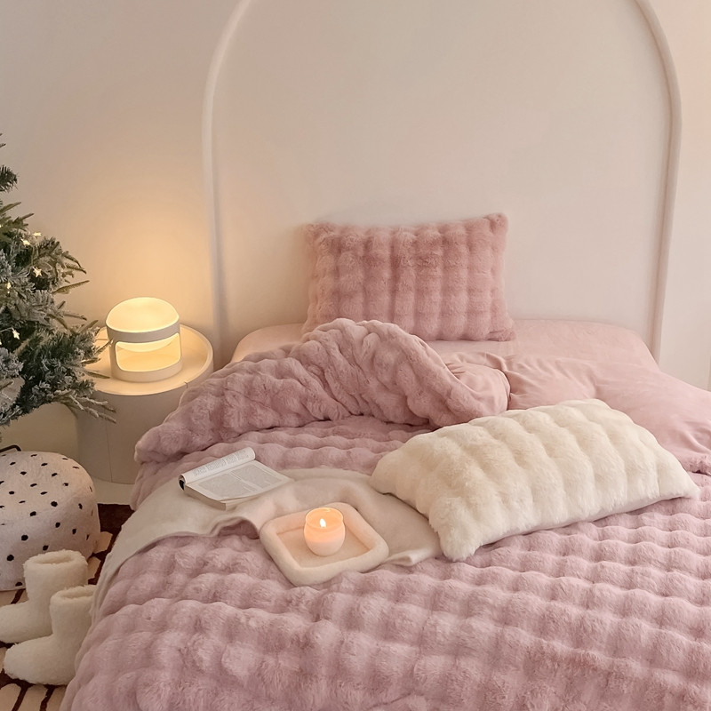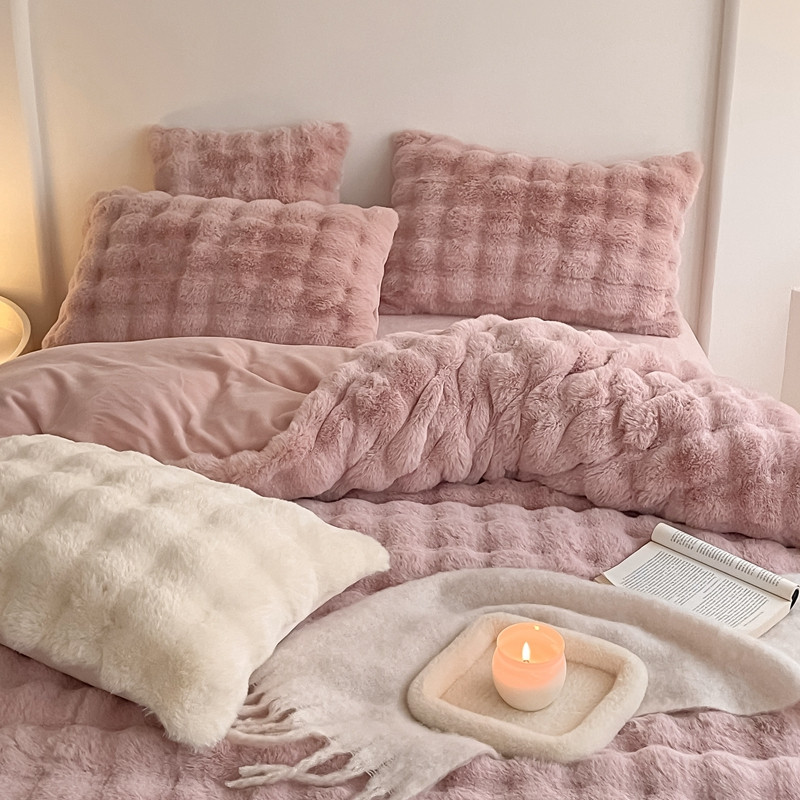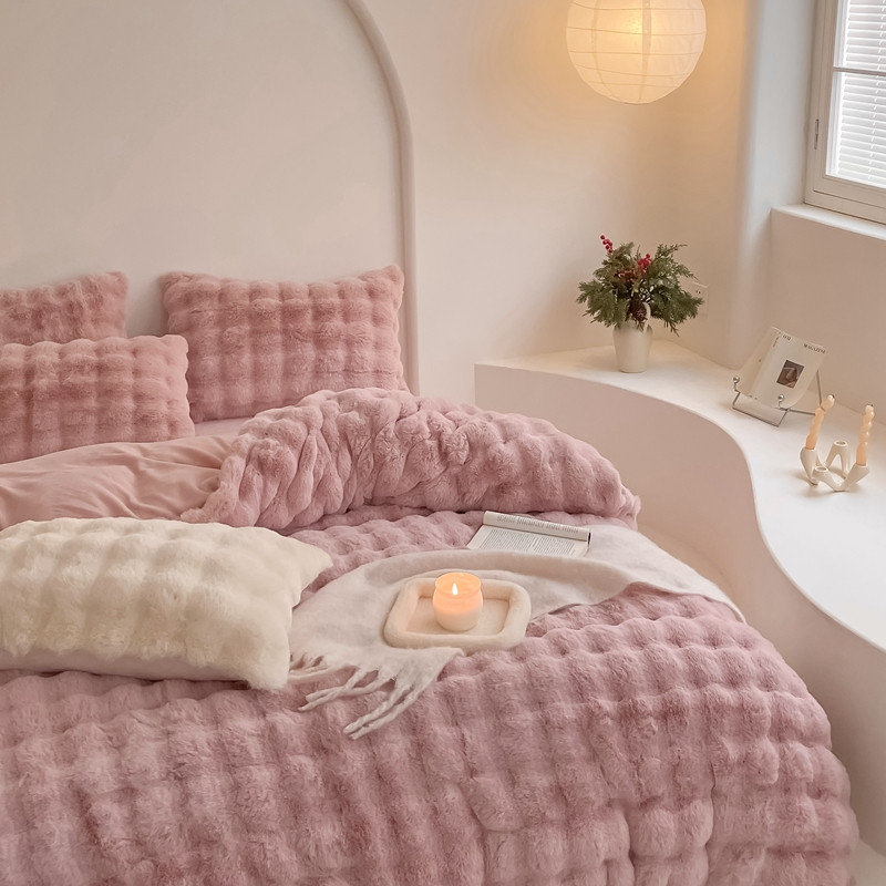 潘朵拉 2023新款爆款兔毛大泡泡四件套 大泡泡豆沙