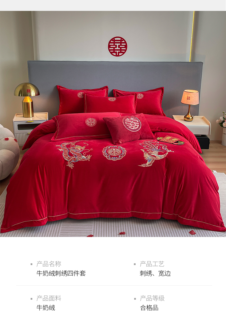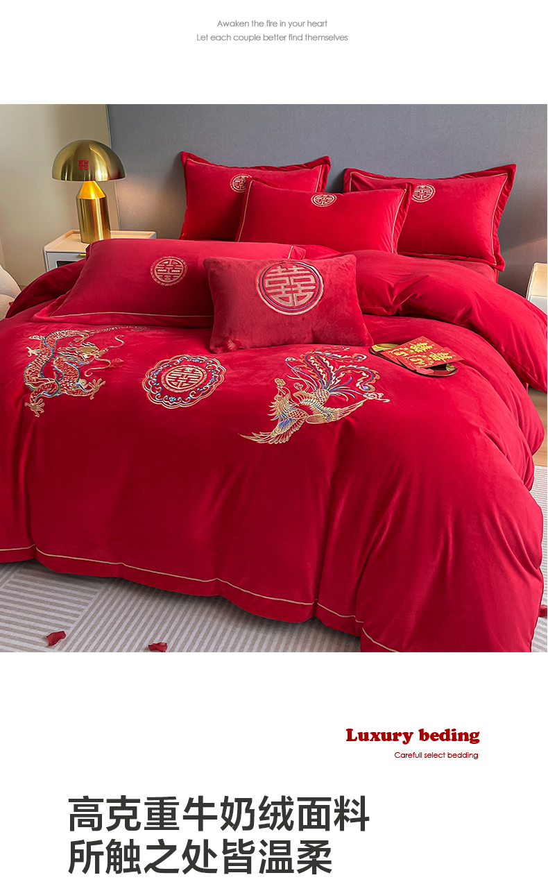 商品名称:(总)花愿 2025新款婚庆牛奶绒四件套拍法一