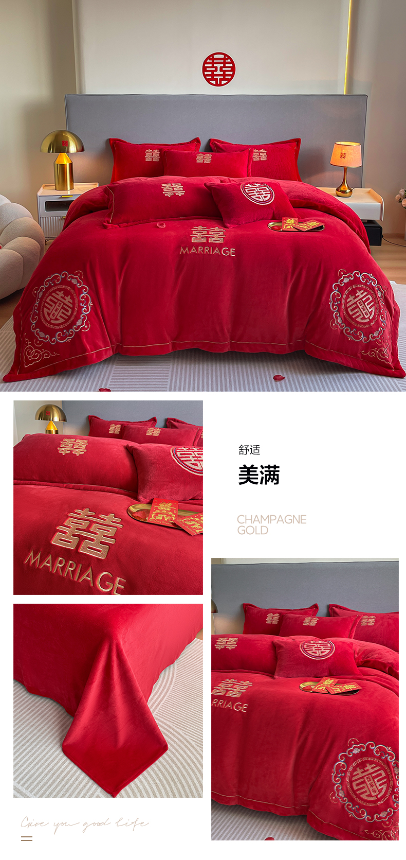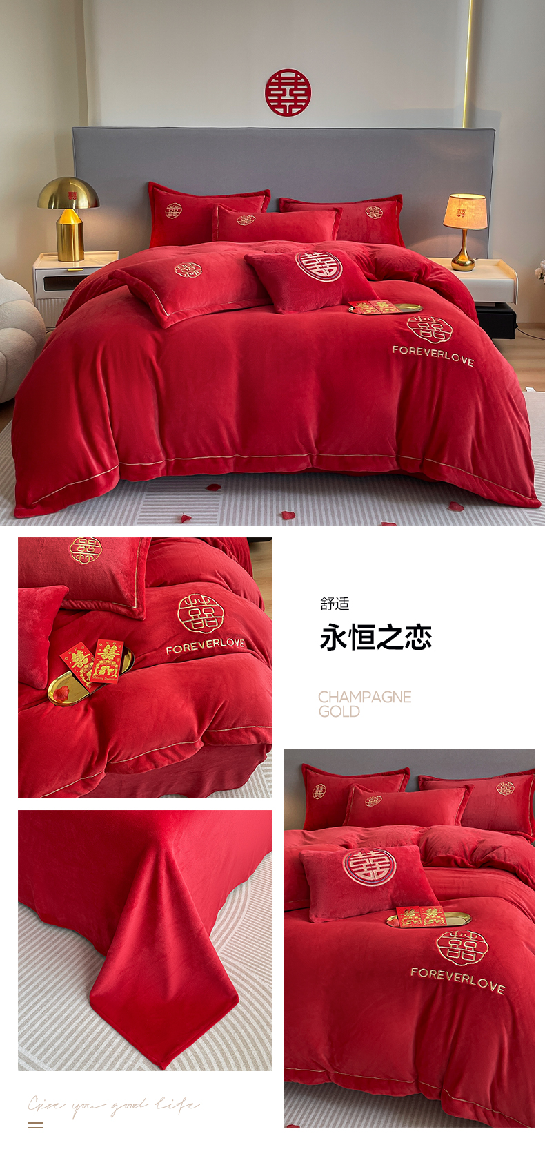 (总)花愿 2025新款婚庆牛奶绒四件套拍法一