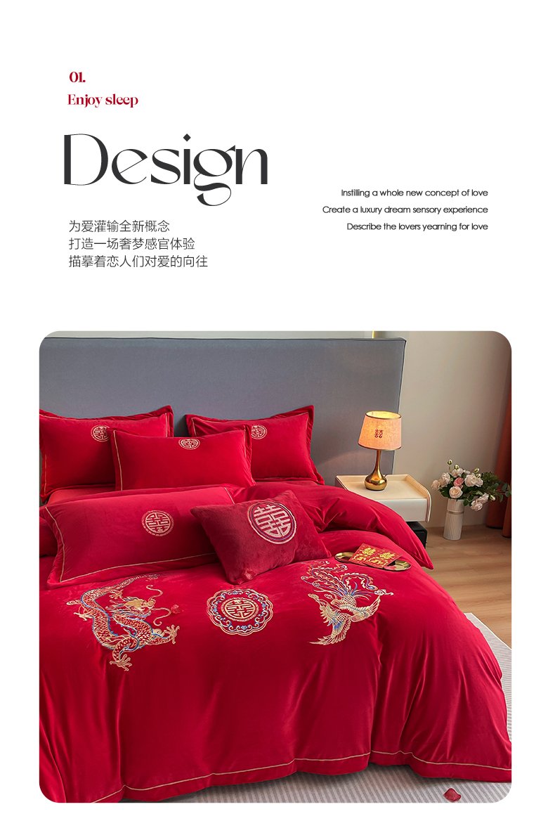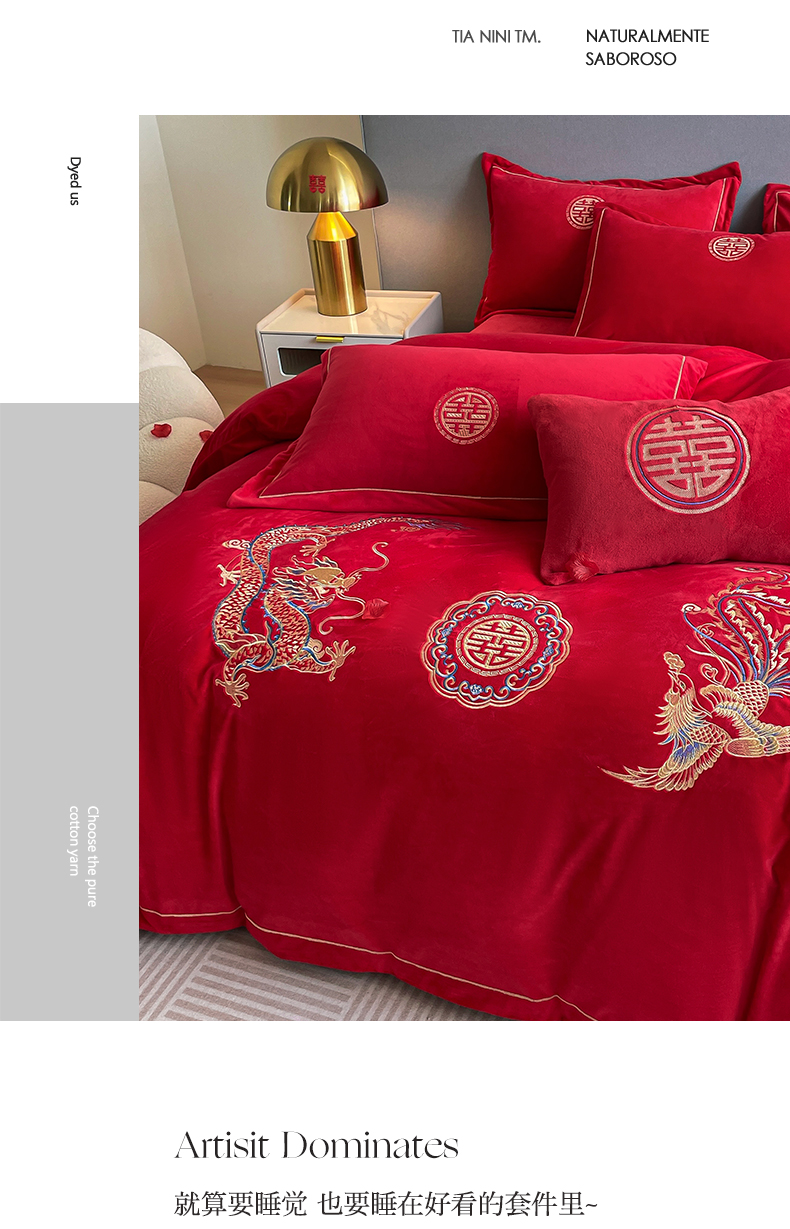 (总)花愿(原花纪) 2025新款水洗棉刺绣婚庆四件套系列,丹枫迎喜,欢喜,良缘,龙凤欢喜,玫瑰之恋,美满,如意,天禧,唯一,喜爱,心心相印,幸福,永恒之恋,钟爱一生