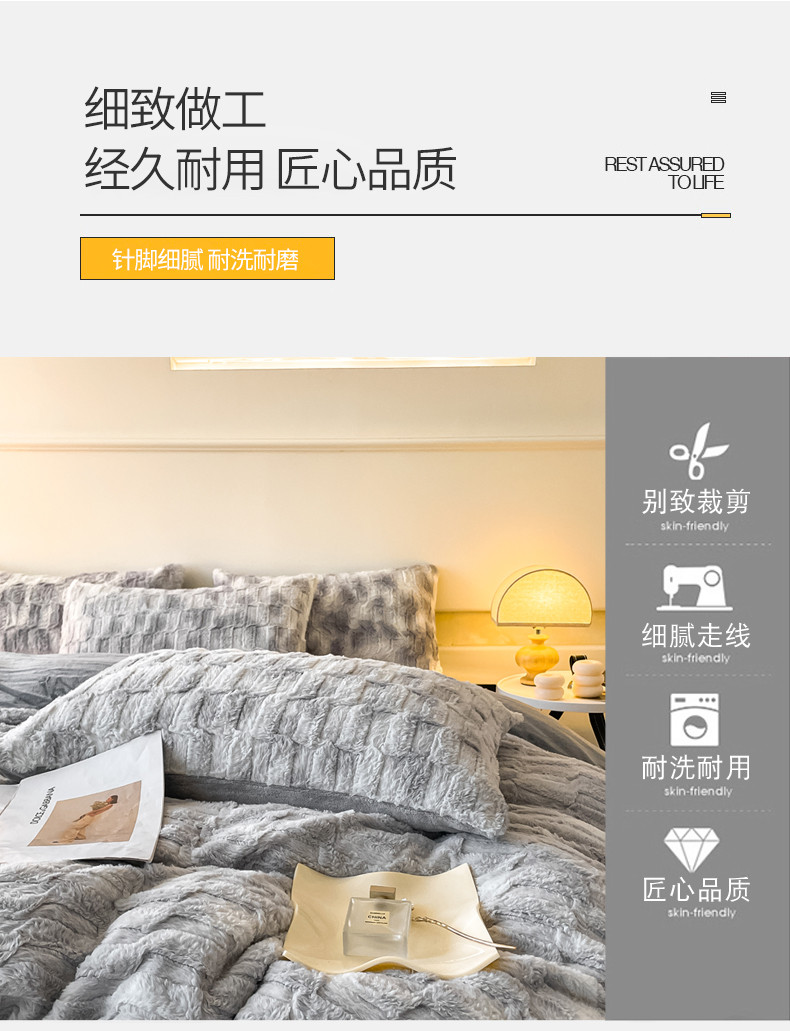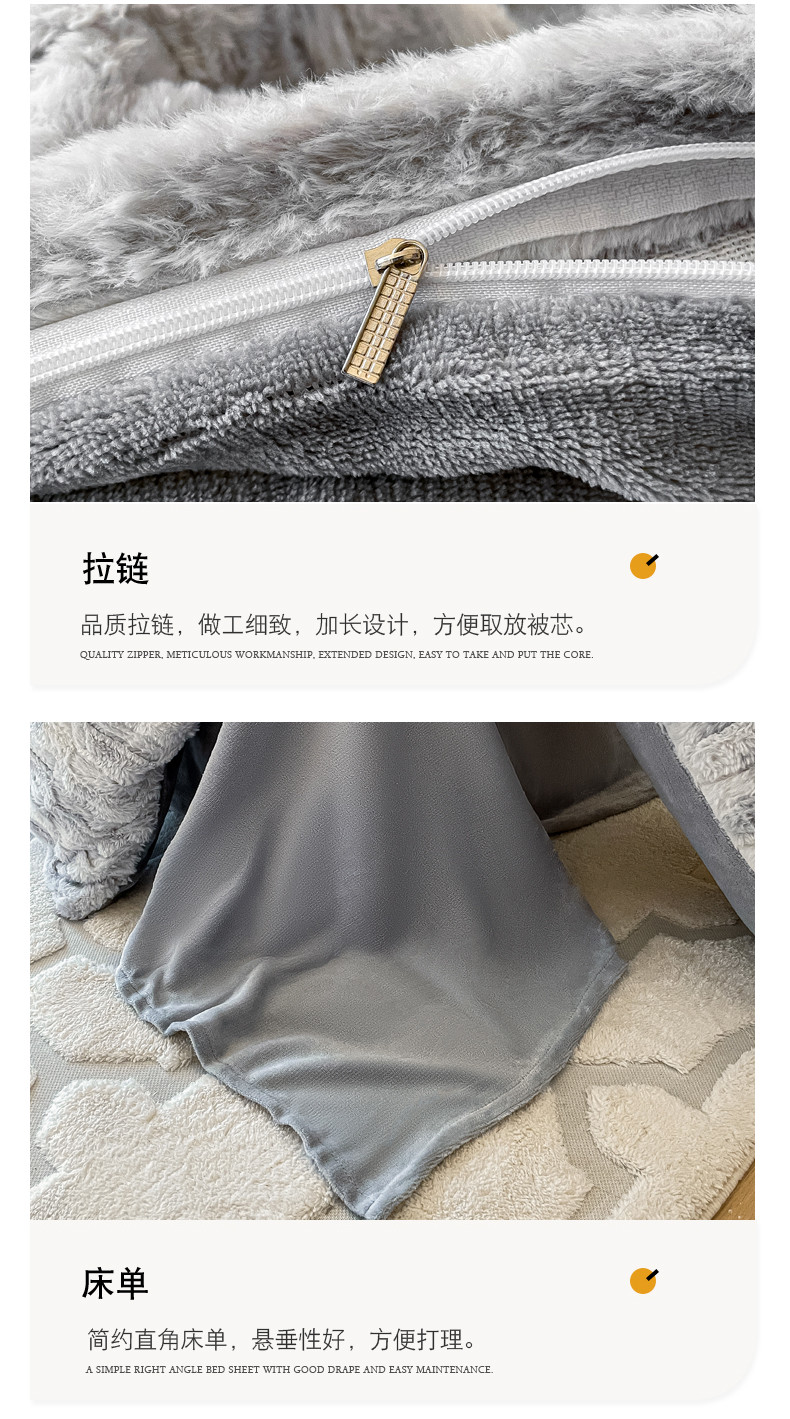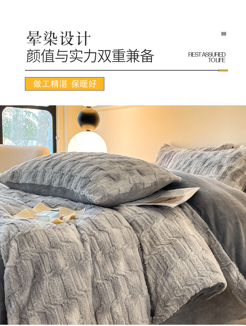 当前位置: 91家纺网 > 商品网购 > 床品套件 > 四件套 > 牛奶绒四件套 > 金爱家 2023新款全消光A类纯色獭兔绒立体牛奶绒四件套 兔毛晕染灰