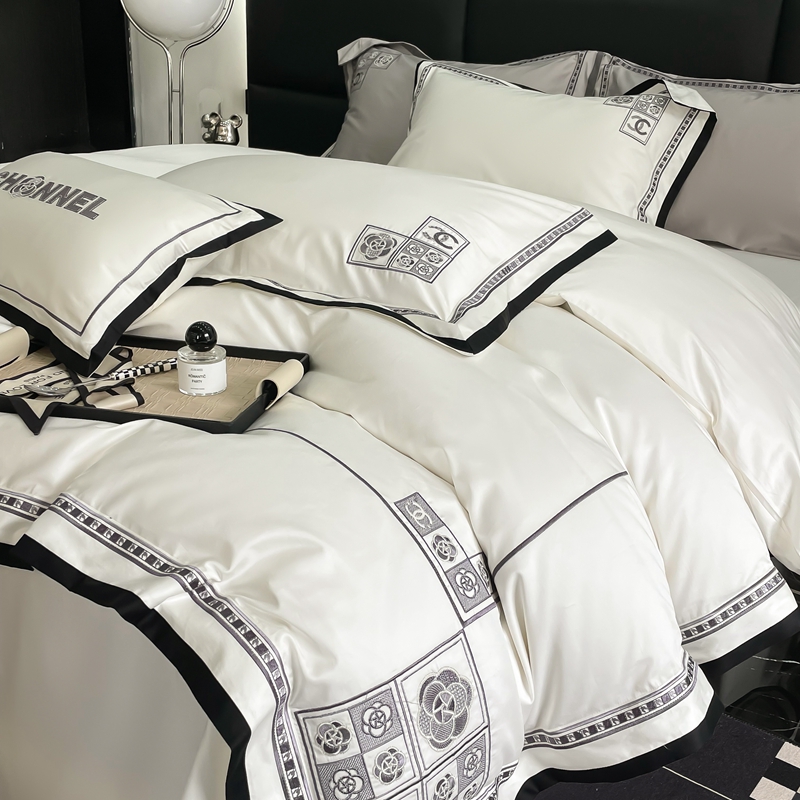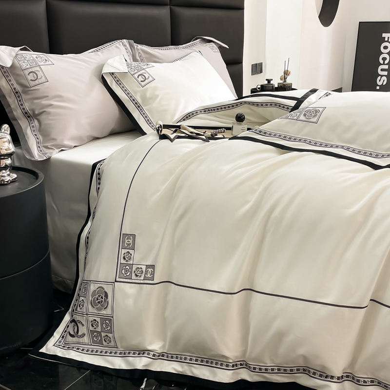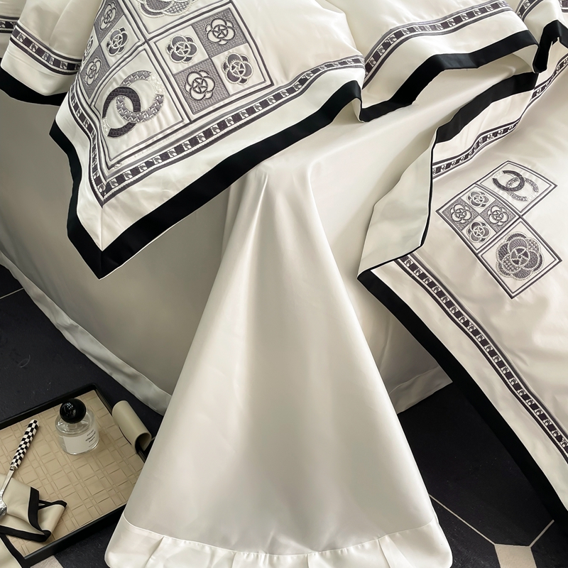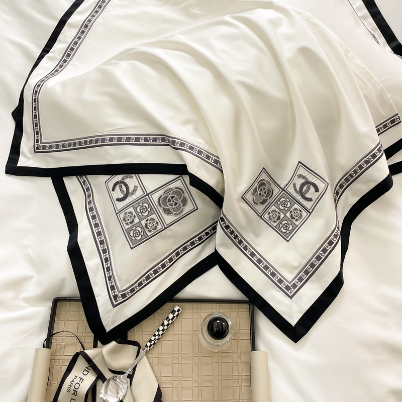 商品名称:若未2023新款50支长绒棉刺绣小香风四件套 香蜜湖 奶油白