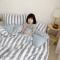 萝莉家纺 2023新款ins小清新兔兔绒牛奶绒四件套 蓝条纹