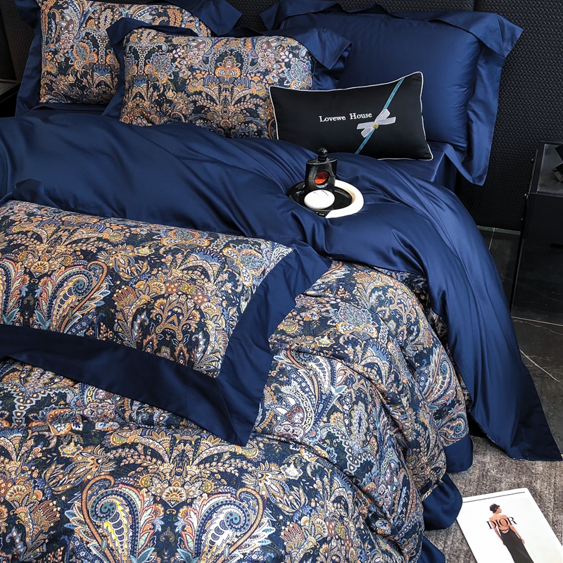若未2023新款秋冬大牌高支高密进口轻奢风数码印花四件套-欧洛莎 蘭穹