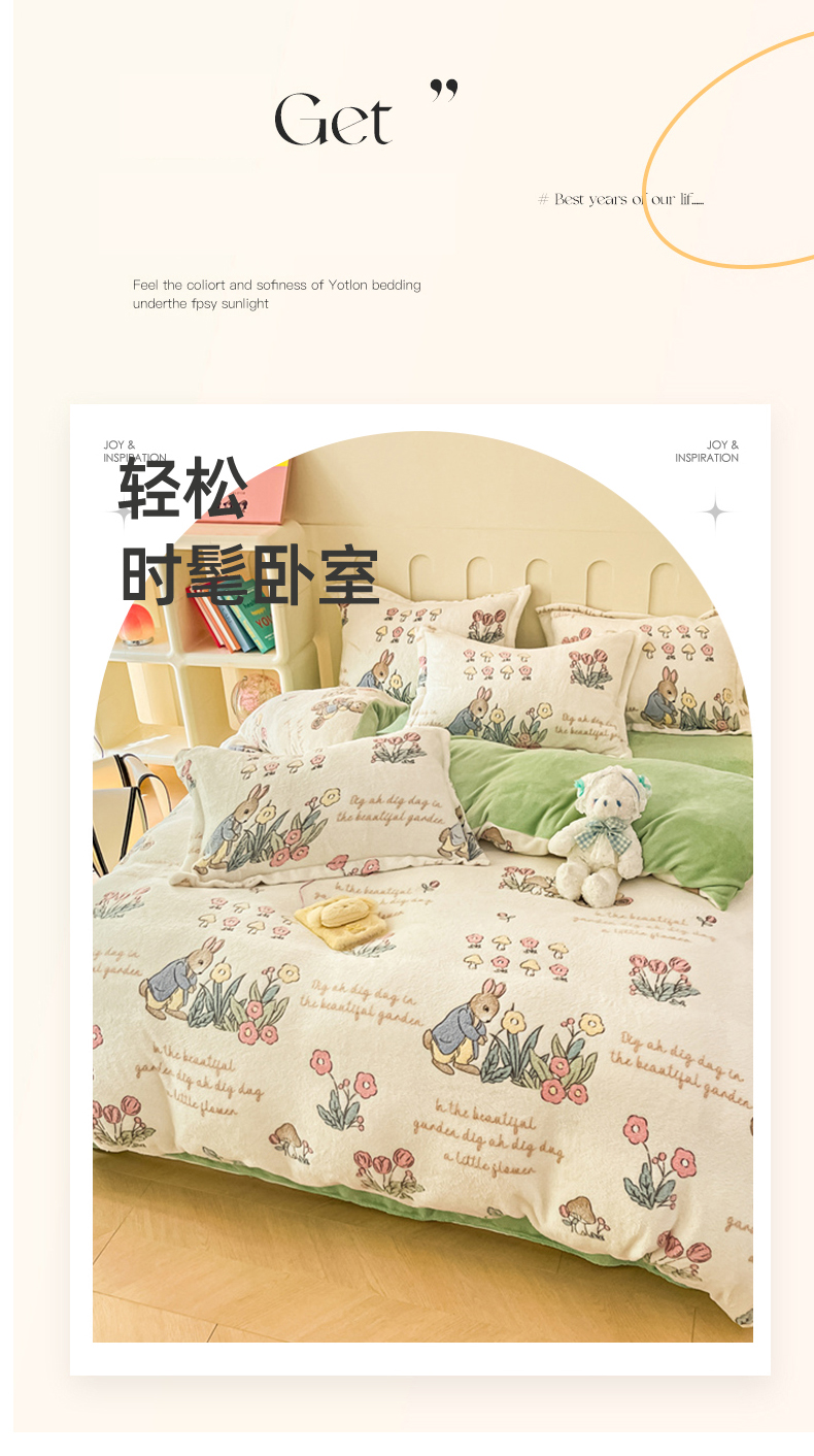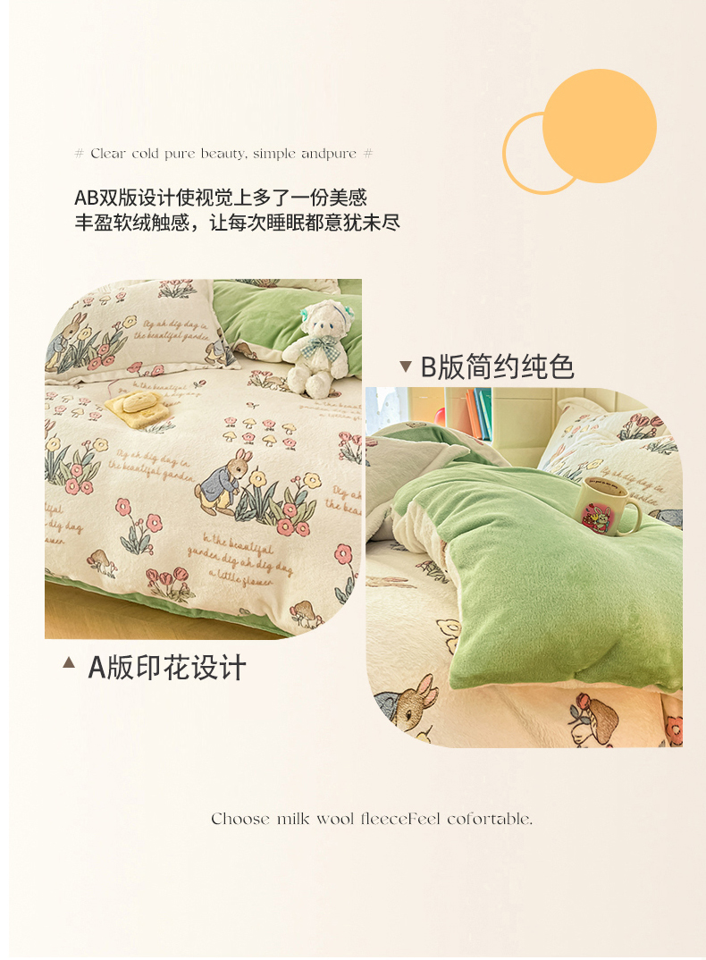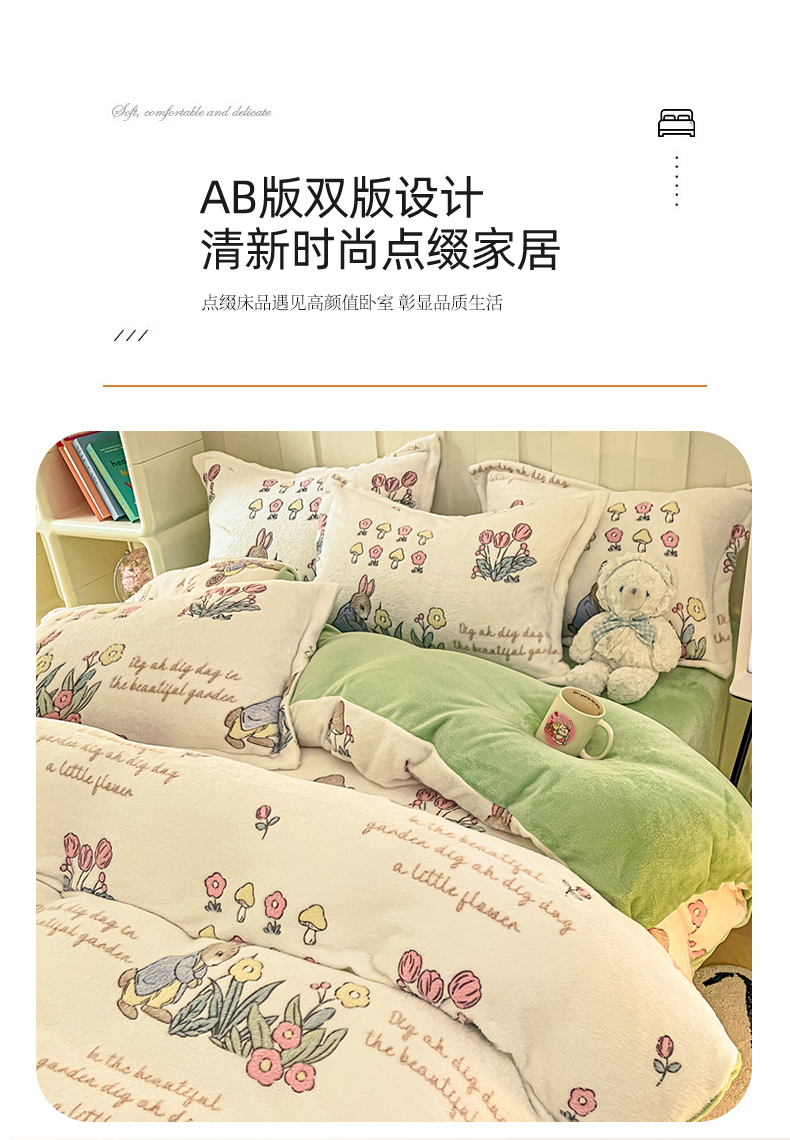 当前位置: 91家纺网 > 商品网购 > 床品套件 > 四件套 > 雕花绒四件套 > 苏拉家居 2023新款5D雕花雪花绒四件套 采花小兔