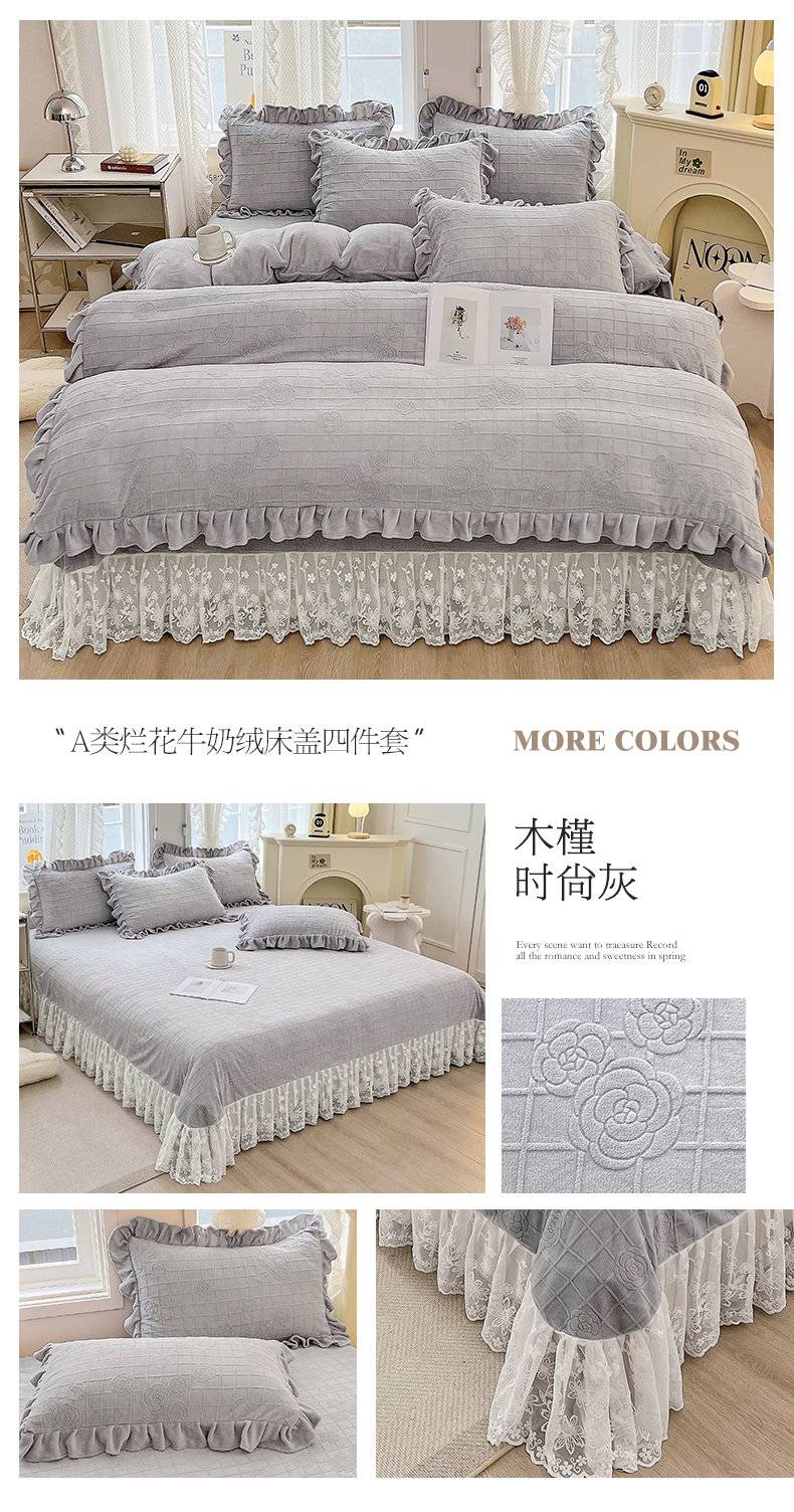 商品名称:宜凡 2023新款烂花牛奶绒床盖四件套 木槿-时尚灰