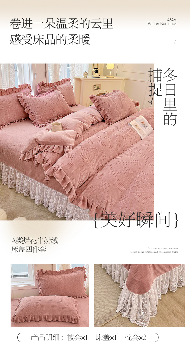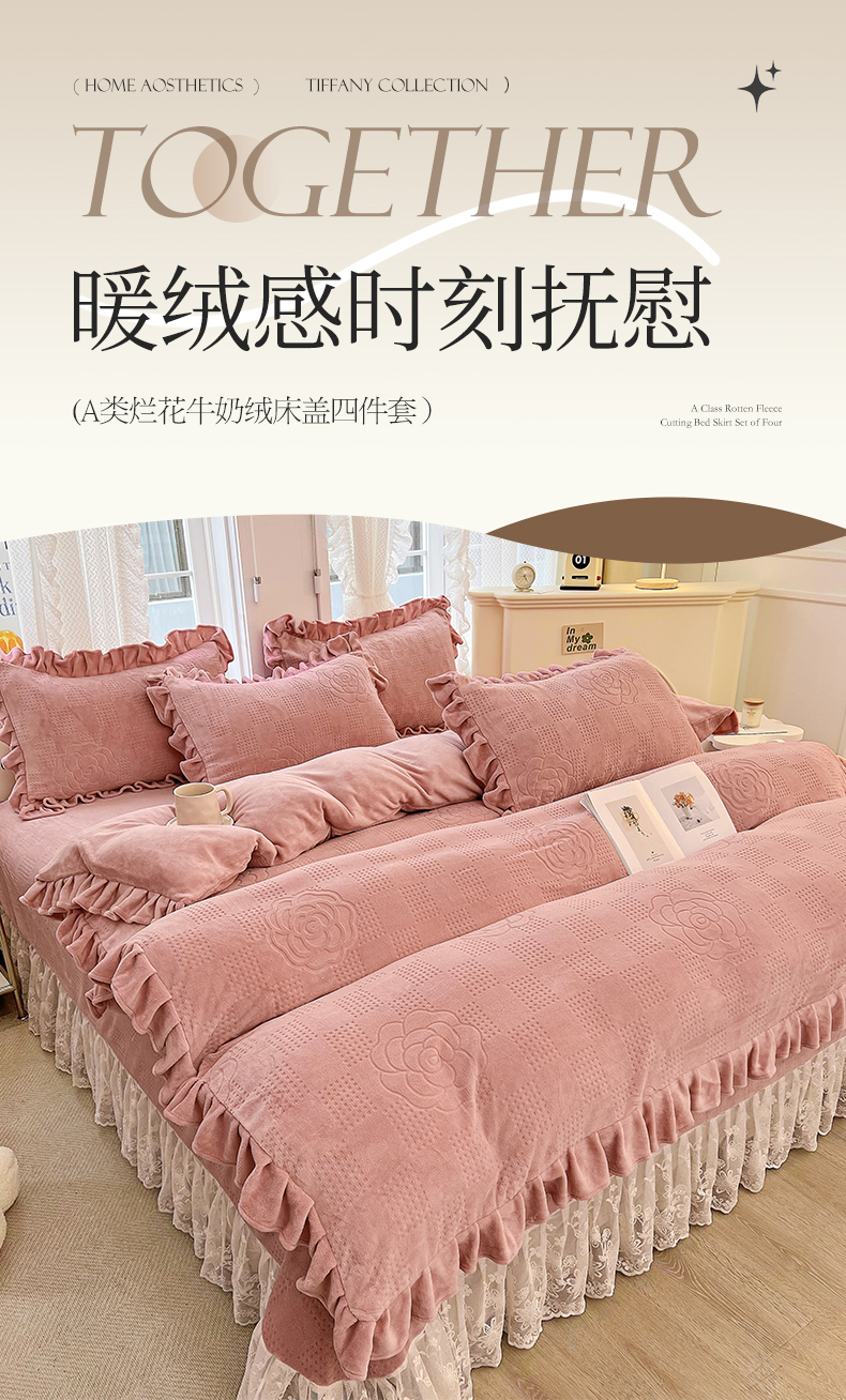 (总)宜凡家纺 2025新款兔绒提花牛奶绒夹棉床裙四件套,爱心 少女粉,爱心 粉紫,爱心 驼色,蝶舞 大红,蝶舞 米色,蝶舞 浅紫,蝶舞 玉色,简爱 苍青,简爱 豆沙紫,简爱 玉色,樱桃 苍青,樱桃 豆沙紫,樱桃 奶油白