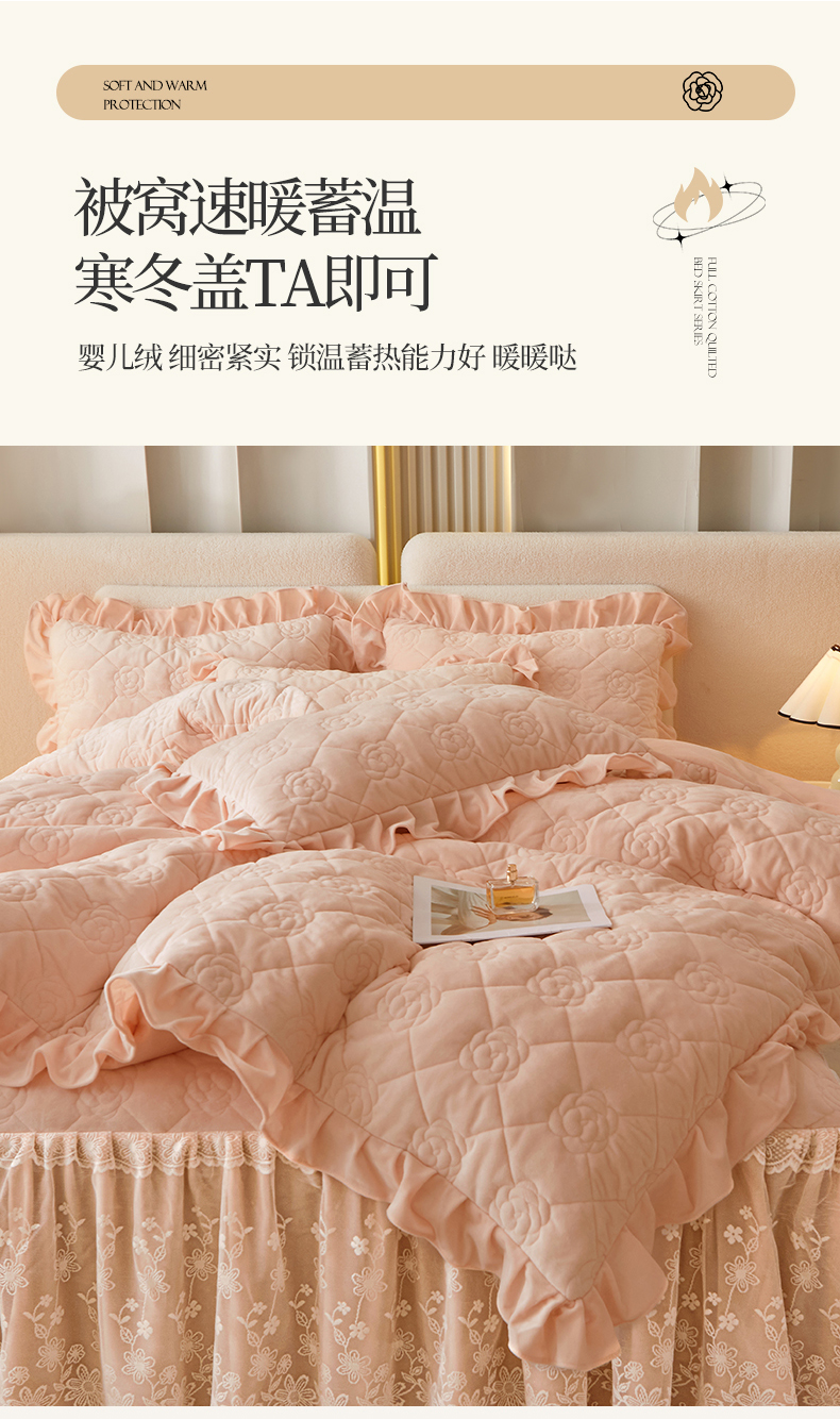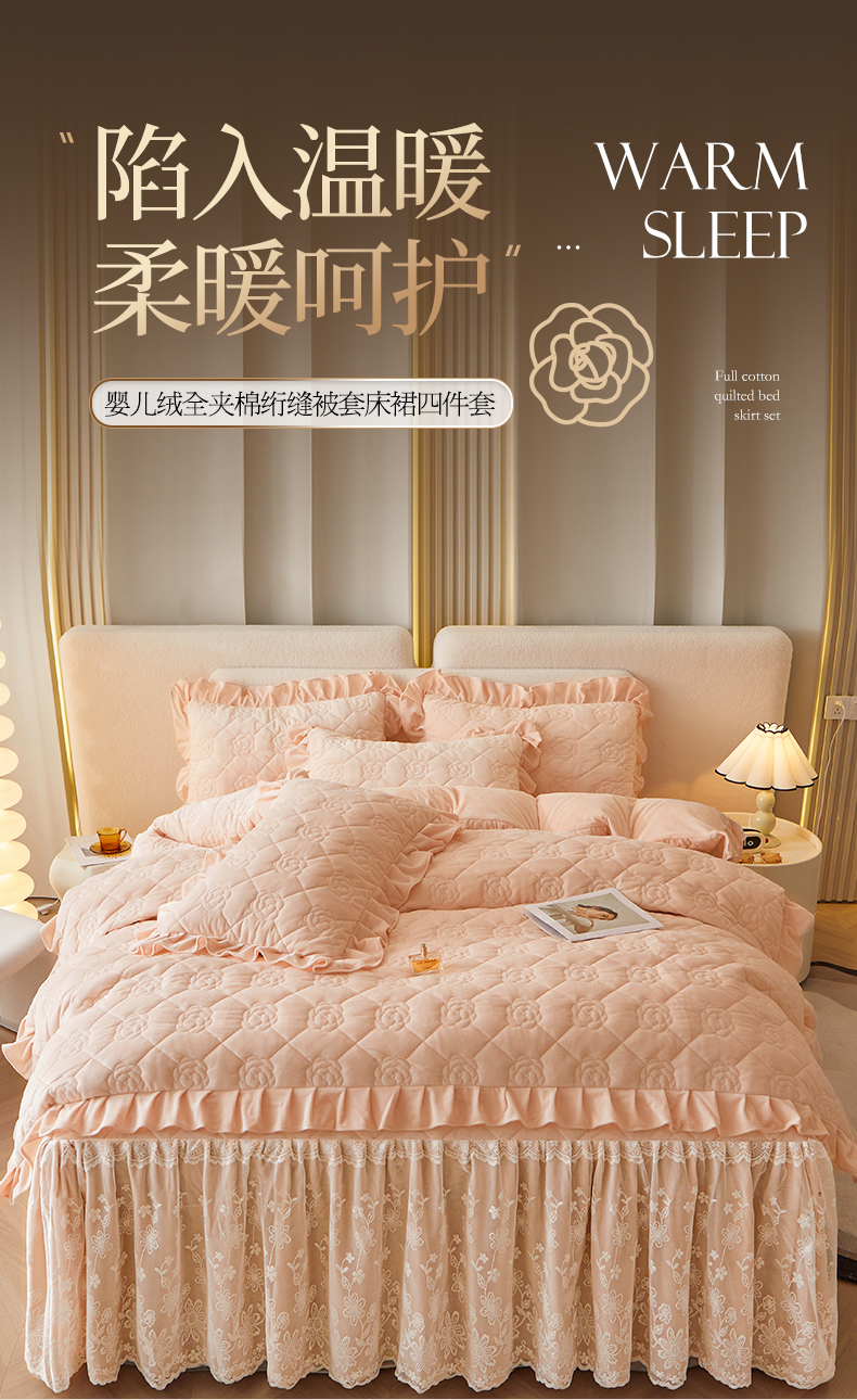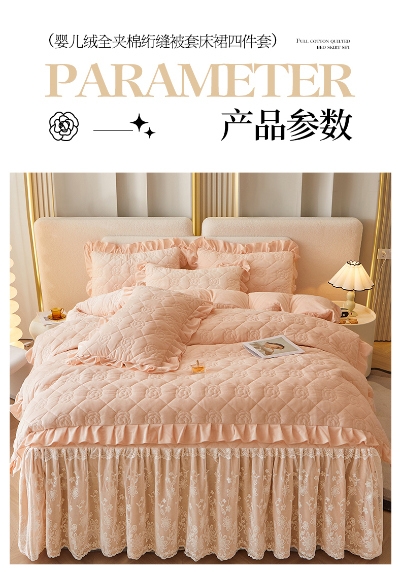 当前位置: 91家纺网 > 商品网购 > 床品套件 > 四件套 > 宜凡2023新款婴儿绒全夹棉床裙四件套 公主玉